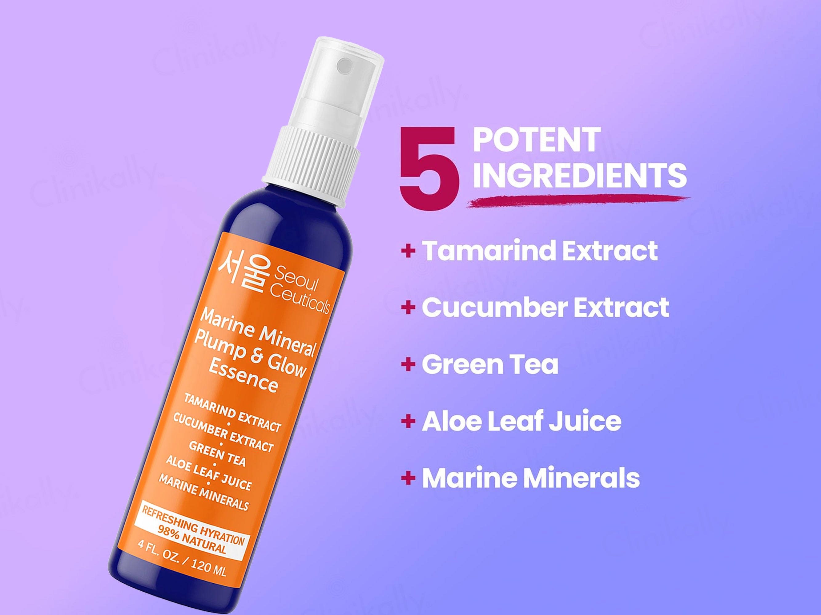 SeoulCeuticals Marine Mineral Plump & Glow Refreshing Hydration Essence is a skincare product designed to deeply hydrate, plump, and revitalize skin with marine minerals, Niacinamide, and Hyaluronic Acid. It enhances moisture retention, improves elasticity, and provides a radiant glow while soothing and refreshing the complexion. This lightweight, non-sticky essence, suitable for daily use on all skin types, delivers visible hydration and rejuvenation benefits over time.