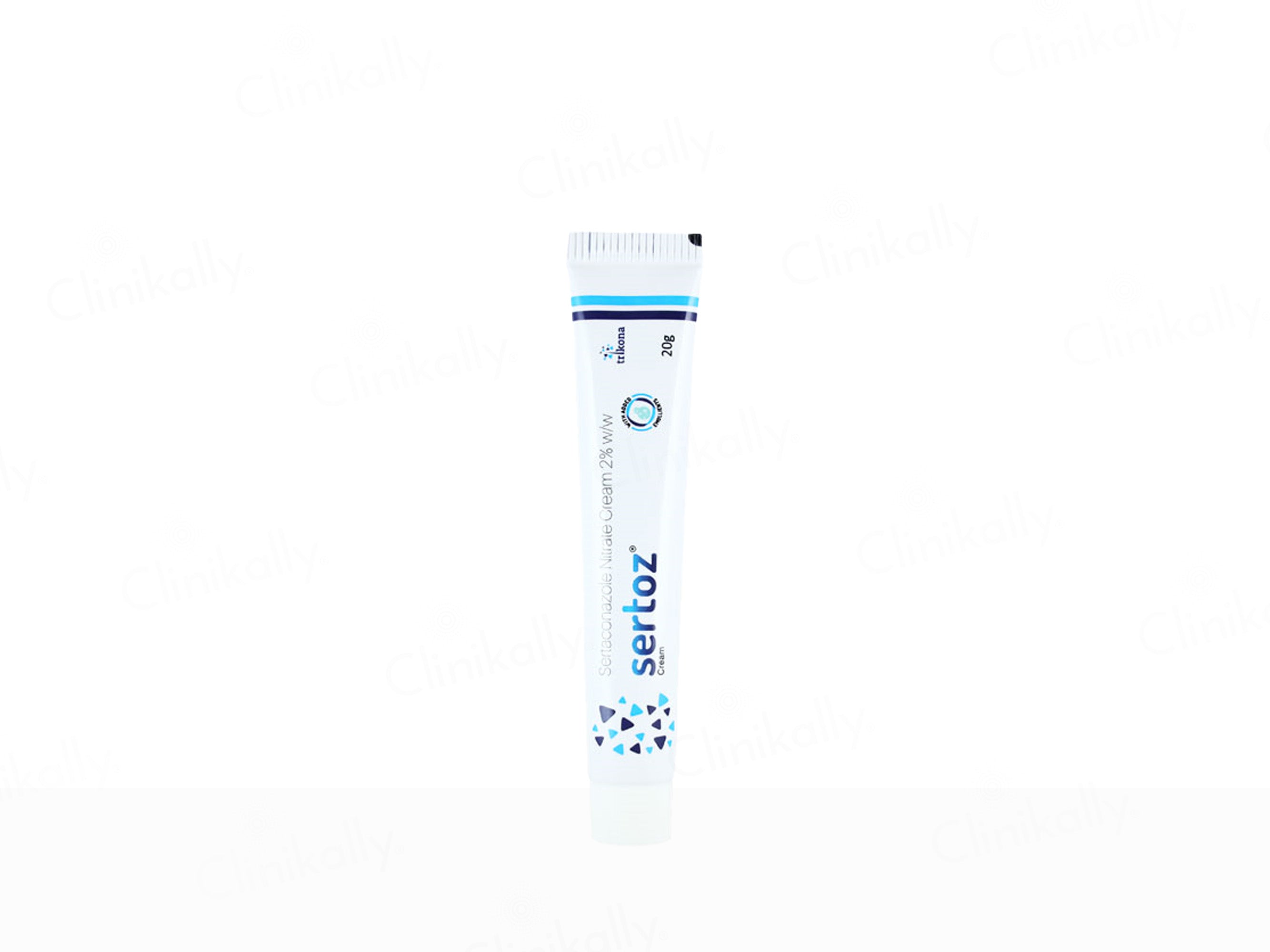 Sertoz Cream is a topical antifungal medication containing Sertaconazole Nitrate 2% w/w, specially formulated to treat fungal skin infections like athlete’s foot, ringworm, and jock itch. It works by inhibiting fungal cell membrane synthesis, effectively clearing infections while relieving associated symptoms like redness, itching, and scaling. The cream is enriched with added emollients to support skin hydration and barrier repair during treatment. Suitable for external use, Sertoz offers targeted relief with a low risk of systemic side effects when used as directed.