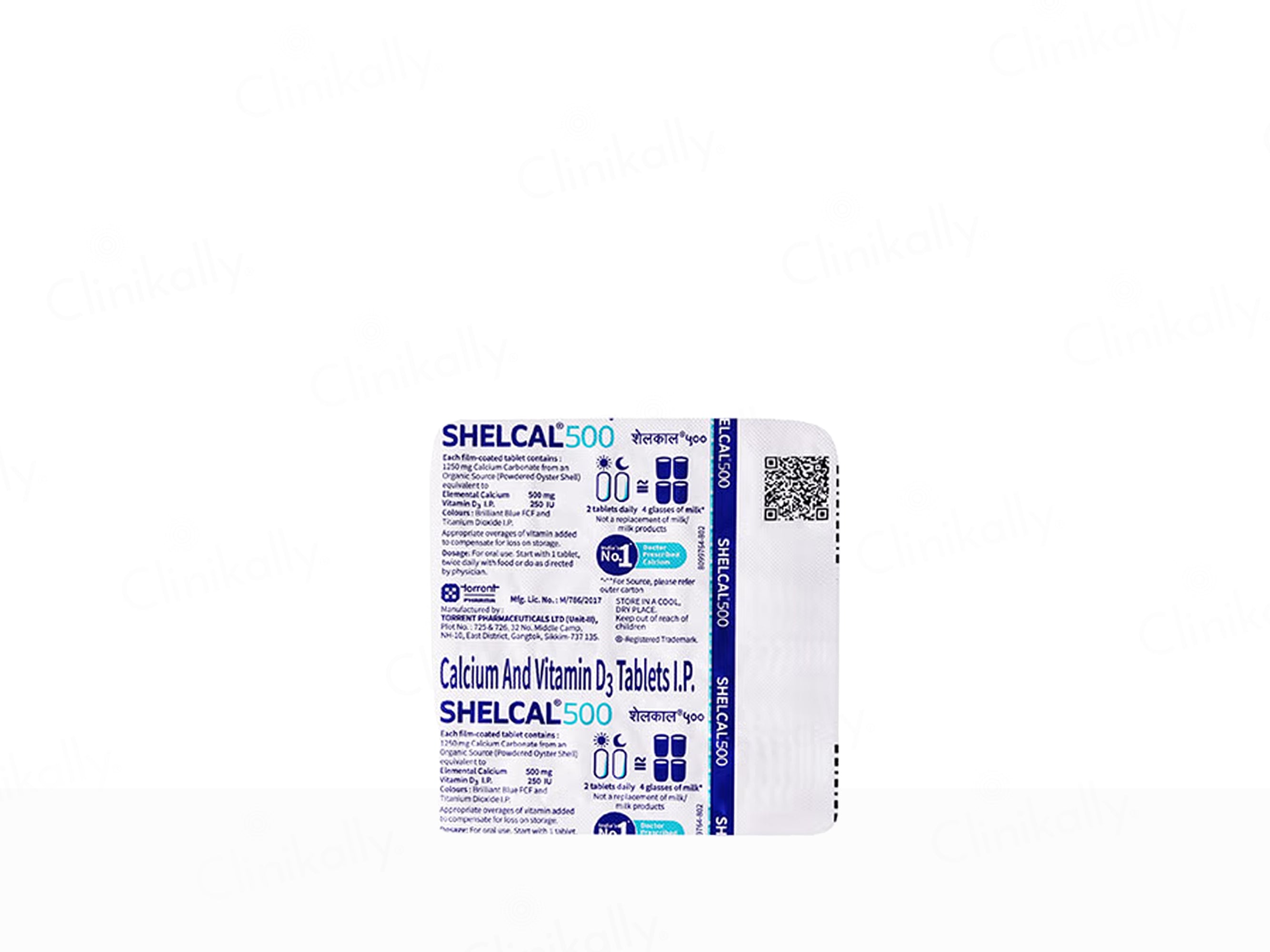 Shelcal 500 Calcium & Vitamin D3 comes in tablet form, to be swallowed with water.