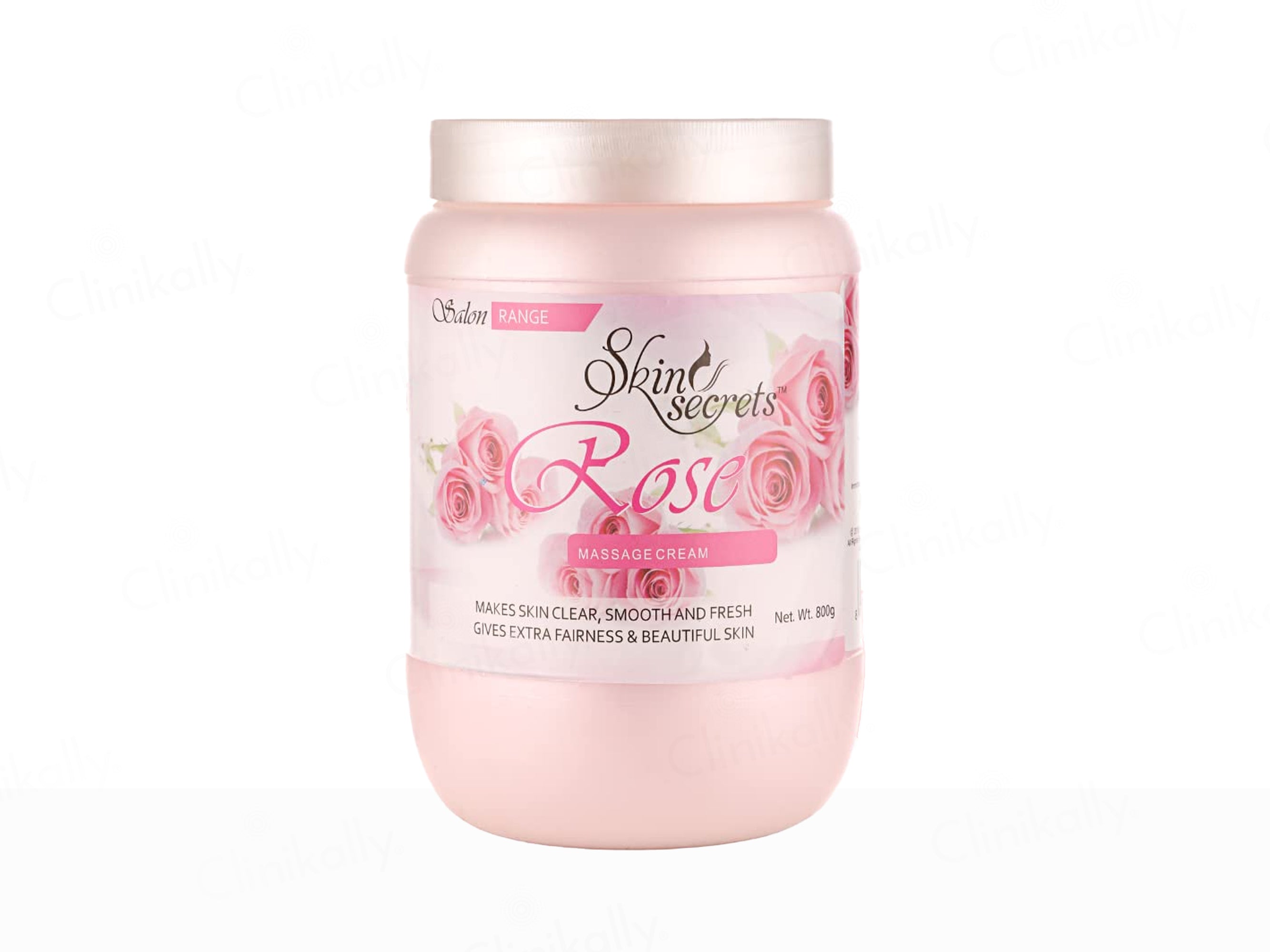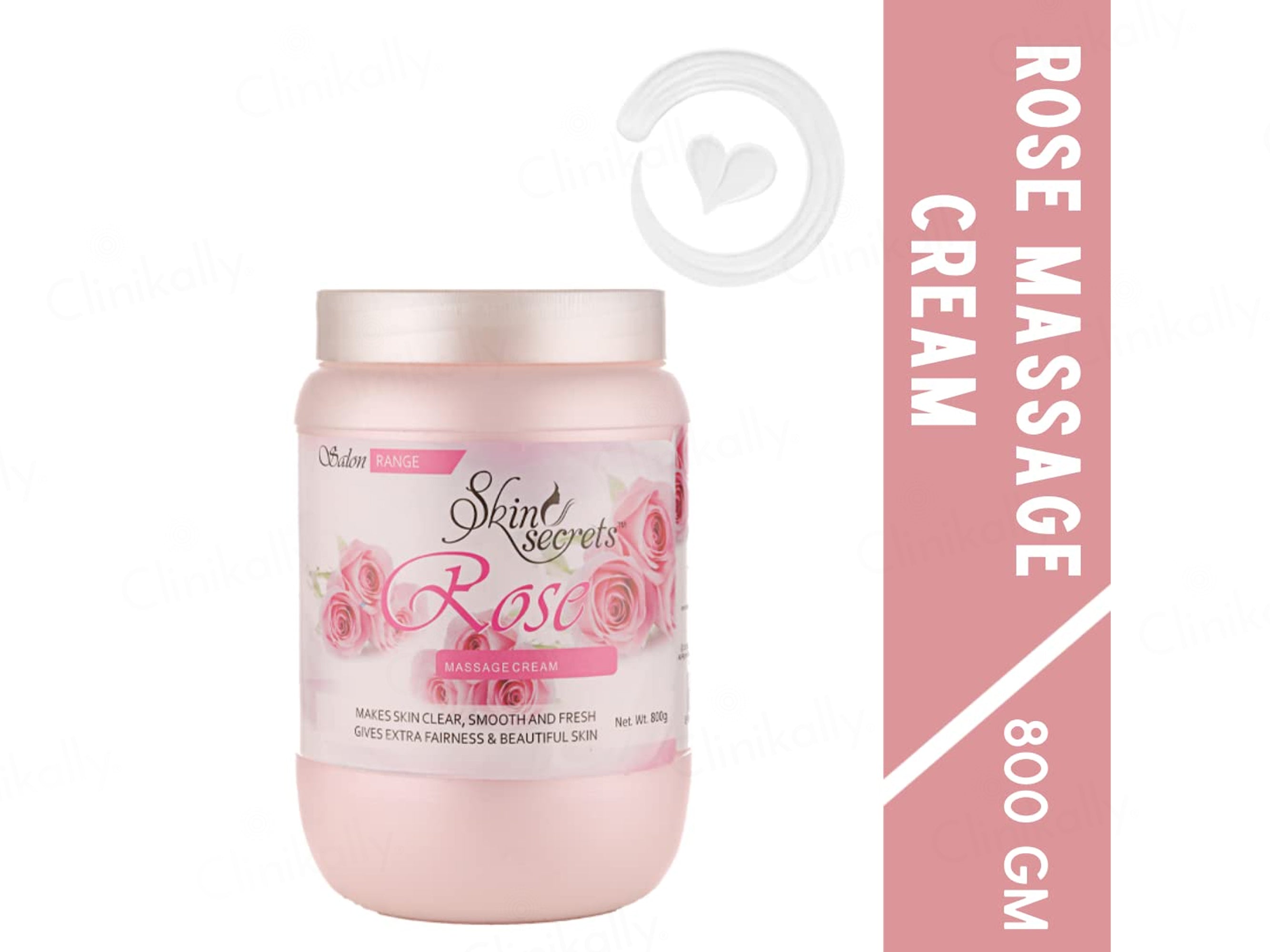 Skin Secrets Rose Massage Cream For Face & Body is an ultra-nourishing, paraben-free, cruelty-free, and vegan cream infused with the relaxing fragrance of roses to deeply moisturize, soften, and rejuvenate skin for a youthful glow and protection from dryness. Enriched with key ingredients like Rose Essential Oil, Rose Water, Glycerin, Niacinamide, Almond Oil, and Shea Butter for antioxidant protection, intense hydration, skin balancing, and soothing tired, aging skin while stimulating cell renewal and enhancing elasticity. This quick-absorbing massage cream removes dead skin cells, tones and revitalizes for smooth, supple texture, and provides a refreshing, invigorating effect suitable for all skin types, leaving you feeling rosy and restored when massaged gently as directed.