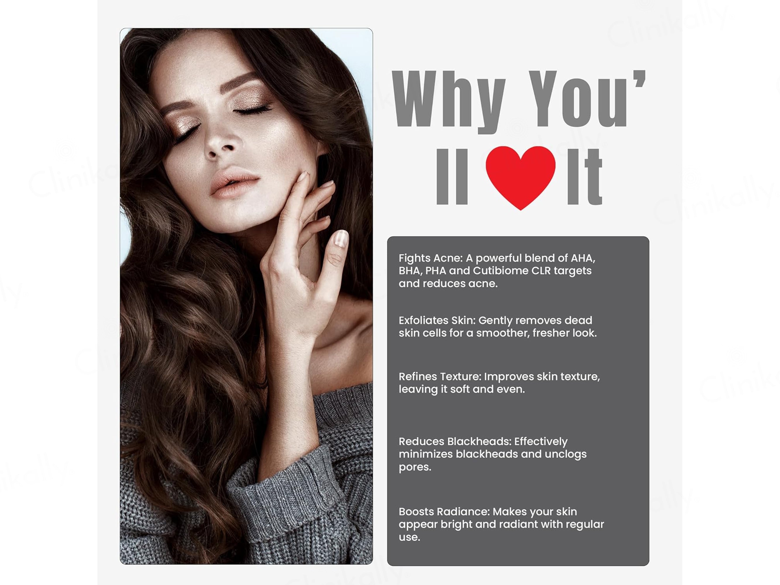 Skinaa AHA BHA PHA Face Serum is an advanced exfoliating and skin-renewing formula designed to improve skin texture, clarity, and radiance through a balanced blend of multi-acids and soothing actives, formulated with key ingredients including Lactic Acid (AHA) to gently exfoliate and enhance brightness, Salicylic Acid (BHA) to deeply cleanse pores and reduce congestion, Gluconolactone (PHA) to provide mild exfoliation with hydration support, Cica to calm and repair the skin barrier, and Cutibium CLR to help balance acne-causing bacteria and support clearer skin, making it suitable for regular use as shown in the usage instructions by applying 3–4 drops to the face and neck while avoiding the eye area and gently massaging in circular motions, helping deliver visible benefits such as enhanced brightness, improved elasticity, smoother and more radiant skin, and clearer pores when used consistently.
