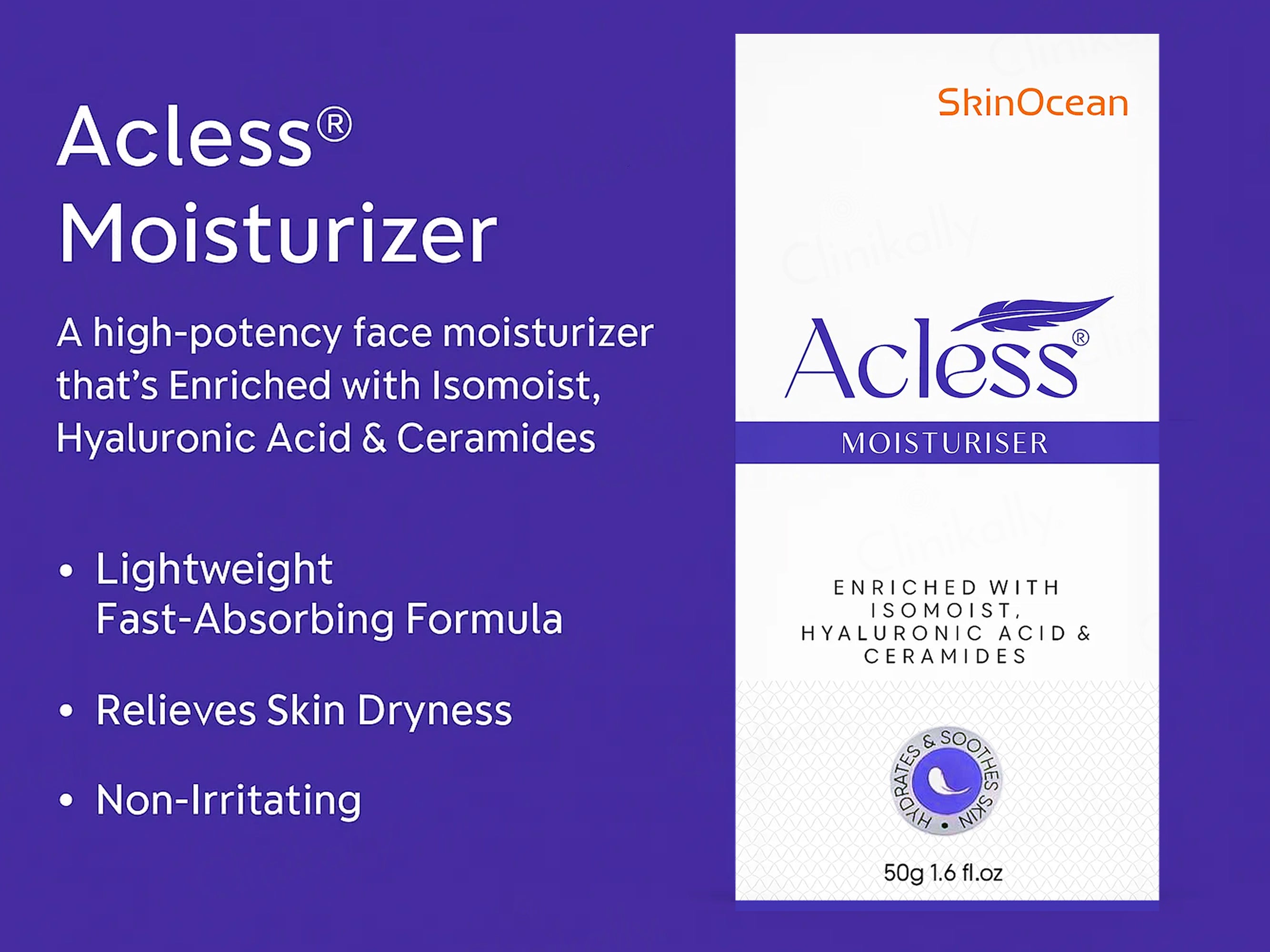 SkinOcean Acless Ceramides & Hyaluronic Acid Moisturiser is a nourishing moisturiser formulated to deliver deep hydration, balance oil production, and reinforce the skin's natural barrier. Infused with ceramides and hyaluronic acid, it effectively replenishes moisture, enhances clarity, and smooths skin texture, leaving skin visibly healthier and more resilient. Its fragrance-free, paraben-free, and preservative-free formulation gently repairs damaged skin, making it ideal even for sensitive skin. Consistent use results in improved elasticity, reduced dryness, and balanced skin health, promoting a radiant complexion.
