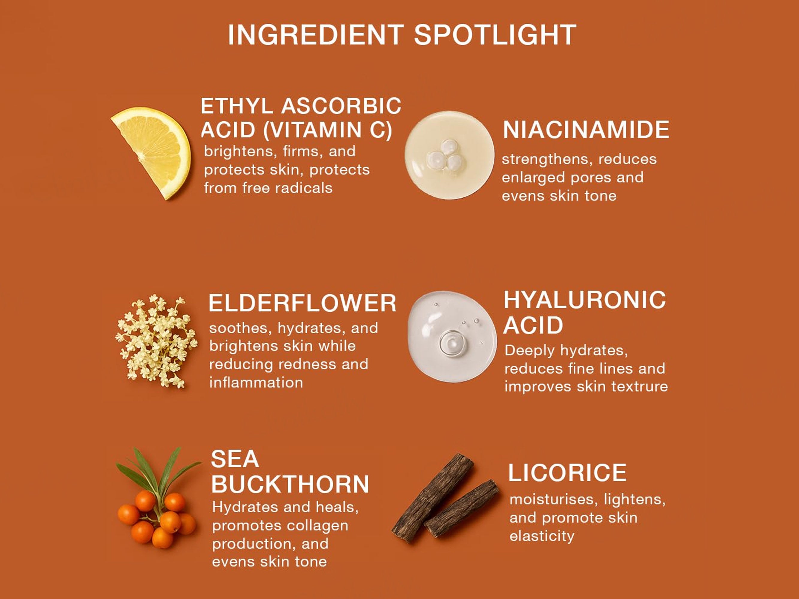 SKOG FCS Clarifying & Brightening Face Serum is a non-comedogenic, lightweight facial serum formulated for all skin types, including sensitive skin, designed to clarify and brighten the complexion by reducing pigmentation, discoloration, blemishes, dark spots, and dullness with visible results from the first week. Enriched with stable Vitamin C, Niacinamide, Hyaluronic Acid, Swedish Elderflower, and Sea Buckthorn, it features key ingredients like Elderflower Oil, Sea Buckthorn Oil, Jojoba Oil, Grapeseed Oil, Wheatgerm Oil, Ylang Ylang, Wild Rose, Argan Oil, Calendula Oil, Licorice Extract, Glyceryl Caprylate, and Glyceryl Undecylenate, which boost elasticity, hydration, fight acne-causing bacteria, even out skin tone, tighten pores, and promote a radiant glow.