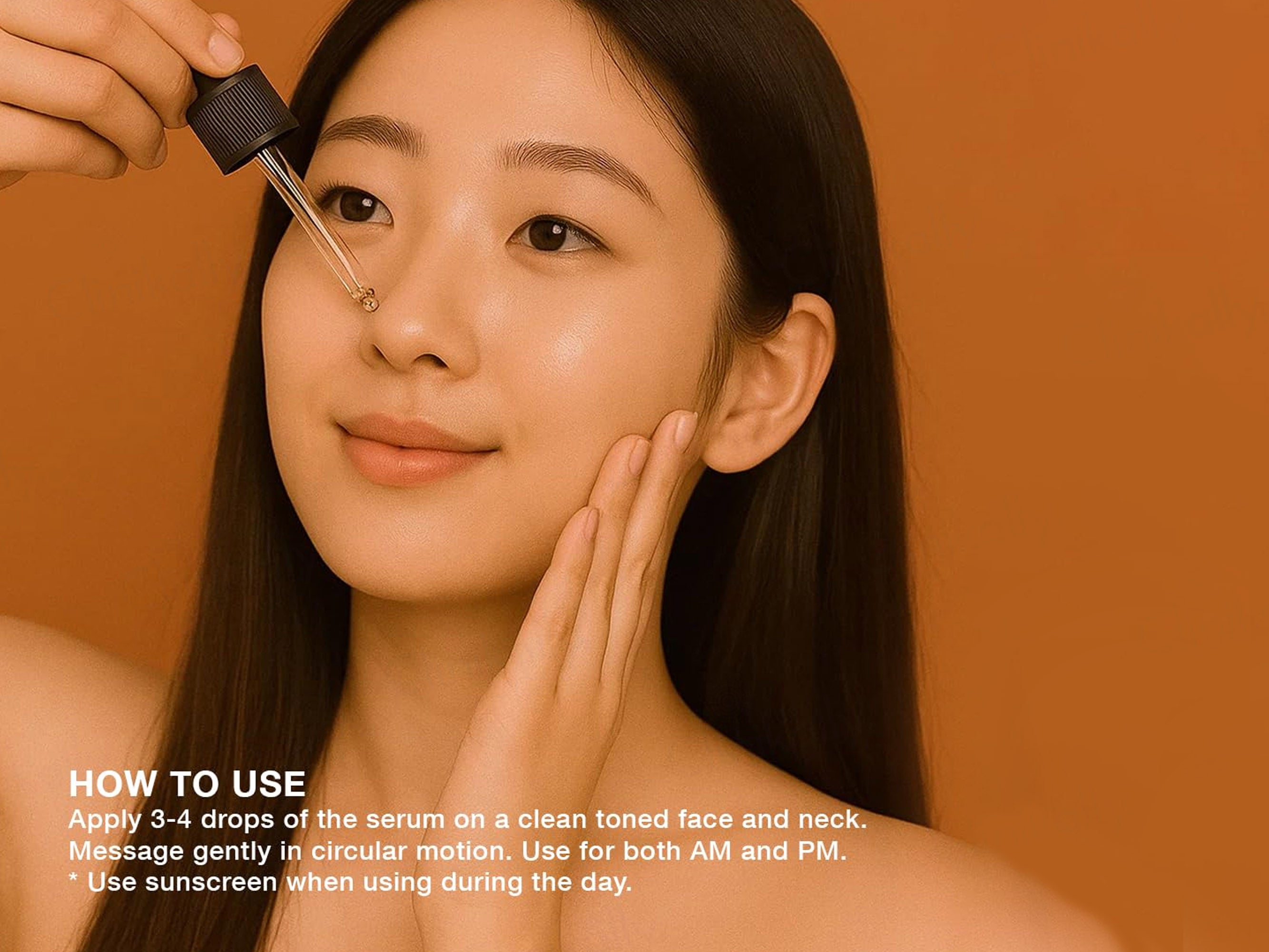 - Apply 3-4 drops on your face and neck, gently massaging in circular motions, and finish with a face cream. Use sunscreen if applying during the day.