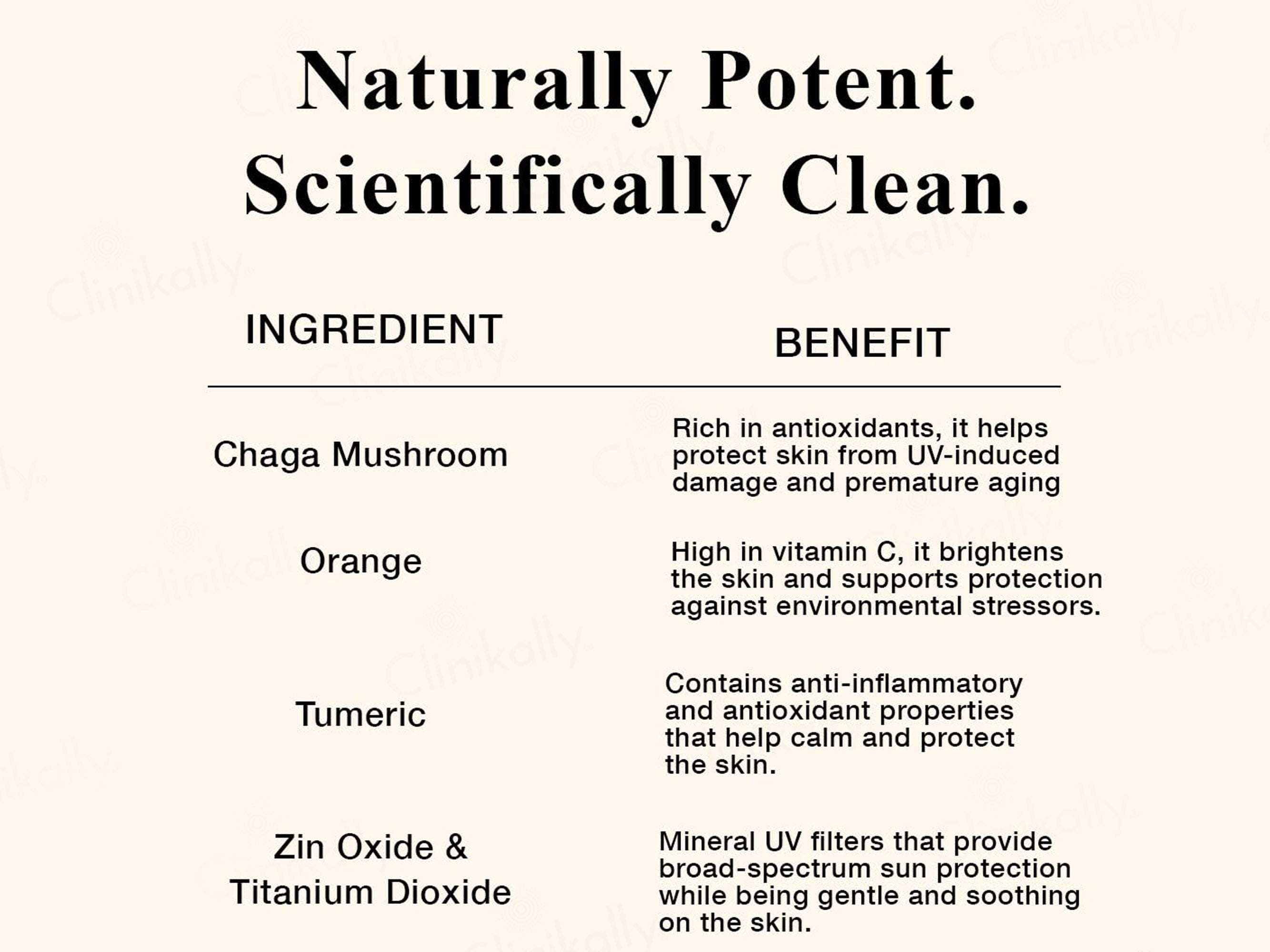 SKOG OSS Daily Sun Shield Sunscreen SPF 35 PA+++ is a lightweight, mineral-based sunscreen formulated for all skin types, offering broad-spectrum protection against UVA and UVB rays while preventing sun damage and premature aging with a non-greasy, non-sweaty finish and no white cast. Enriched with key ingredients like Chaga Mushroom Extract, Titanium Dioxide, Zinc Oxide, Carrot Seed Oil, Sunflower Oil, Aloe Vera Extract, Shea Butter, Almond Oil, Olive Oil, and Turmeric, it moisturizes, nourishes, and repairs skin with antioxidants, making it ideal for daily use and suitable for face and body application.