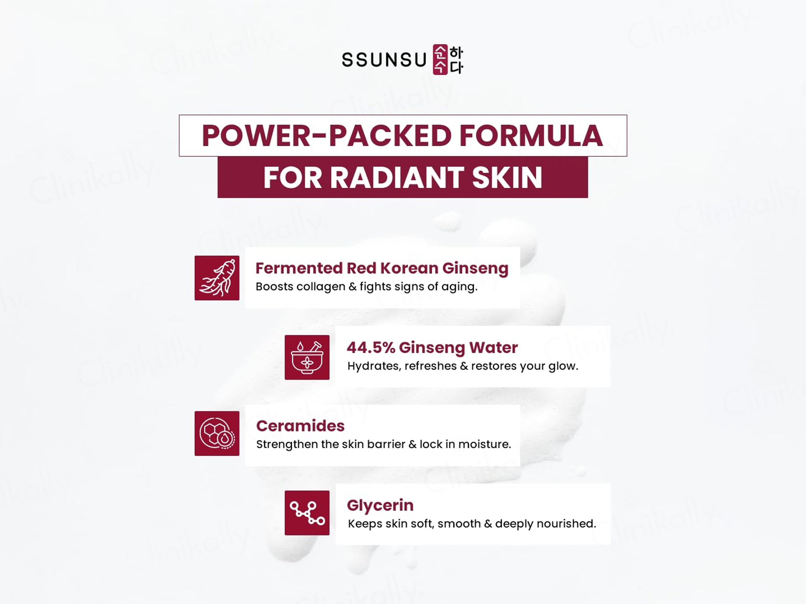 SSUNSU Water Barrier Cera Ginseng Cloud Cleanser is a skincare product designed to gently cleanse, strengthen the skin barrier, and hydrate with a blend of Ceramides, Ginseng Extract, and Hyaluronic Acid. Enriched with Aloe Vera and Glycerin, it removes impurities, soothes irritation, and leaves a soft, dewy finish. This mild cleanser, suitable for daily use on all skin types, delivers visible barrier-supporting benefits over time.