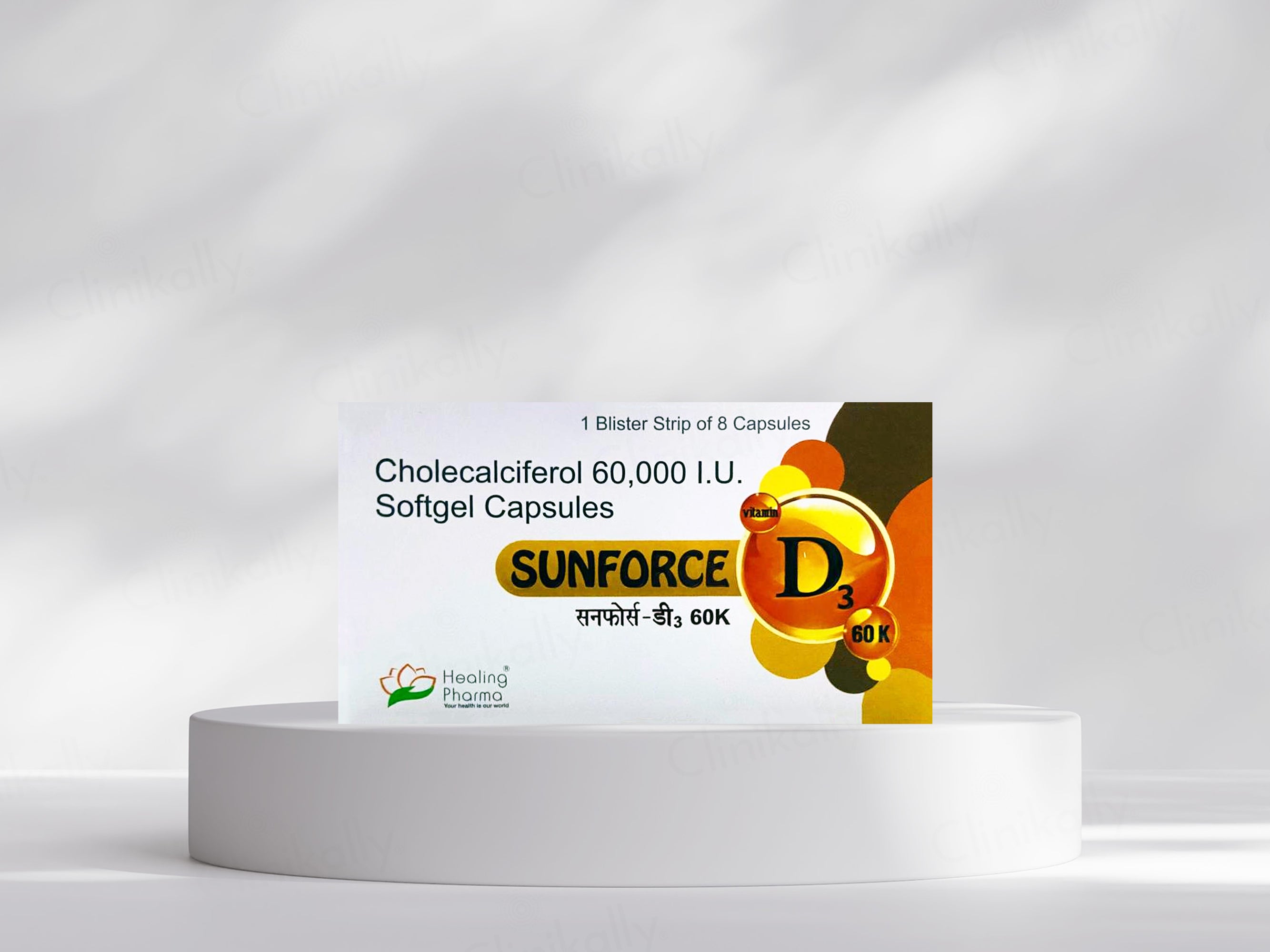Sunforce D3 60000 IU Softgel Capsule is a high-potency Vitamin D3 supplement used to treat and prevent Vitamin D deficiency. It supports calcium absorption, strengthens bones, boosts immunity, and helps maintain overall musculoskeletal health. This supplement is particularly beneficial in osteoporosis, rickets, and individuals with limited sun exposure or poor dietary intake of Vitamin D.