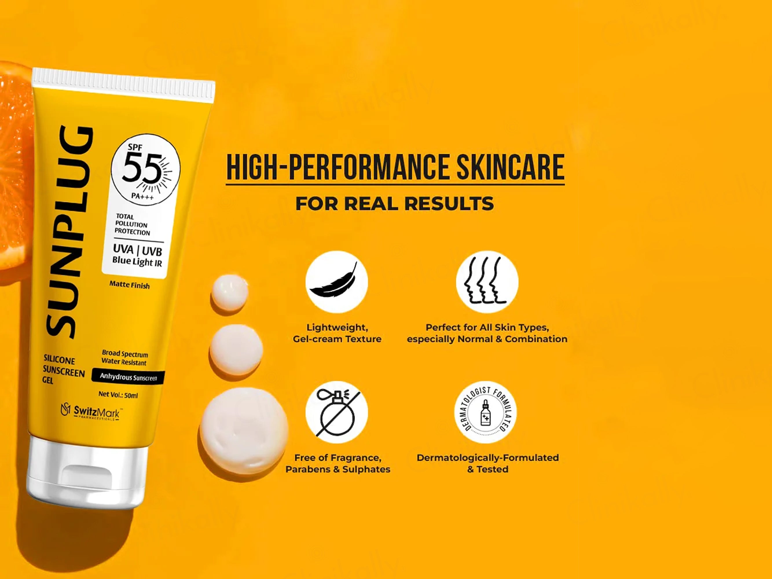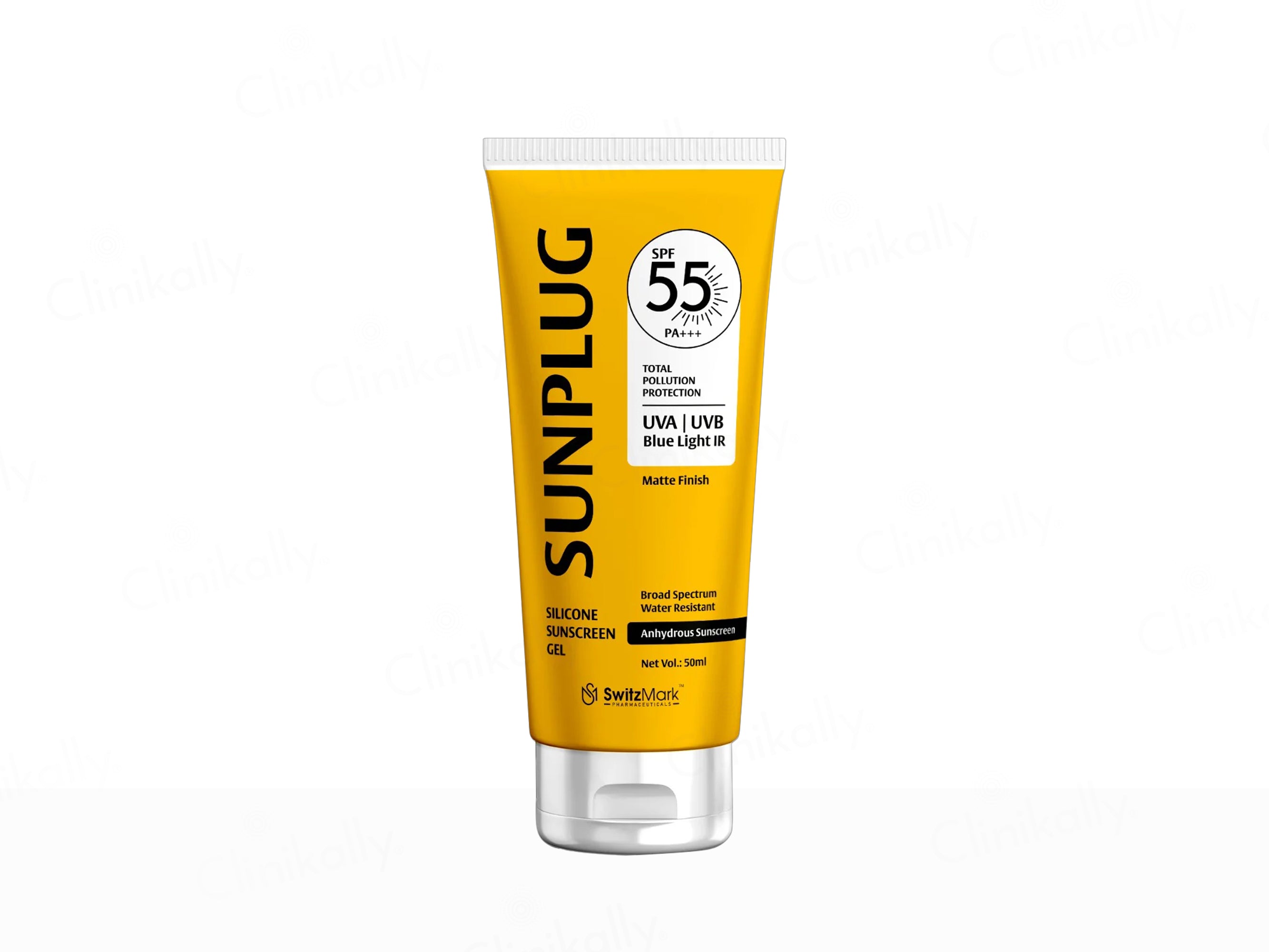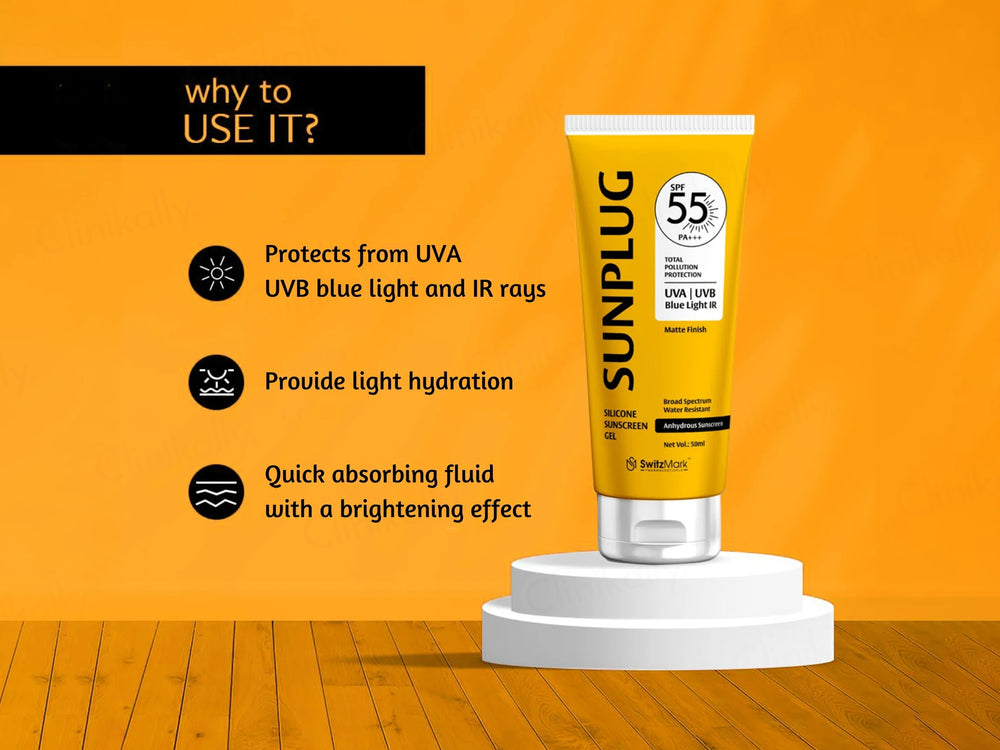 Sunplug Silicone Anhydrous Matte Finish Sunscreen Gel SPF 55 PA+++ is a high-performance sunscreen with a matte finish.