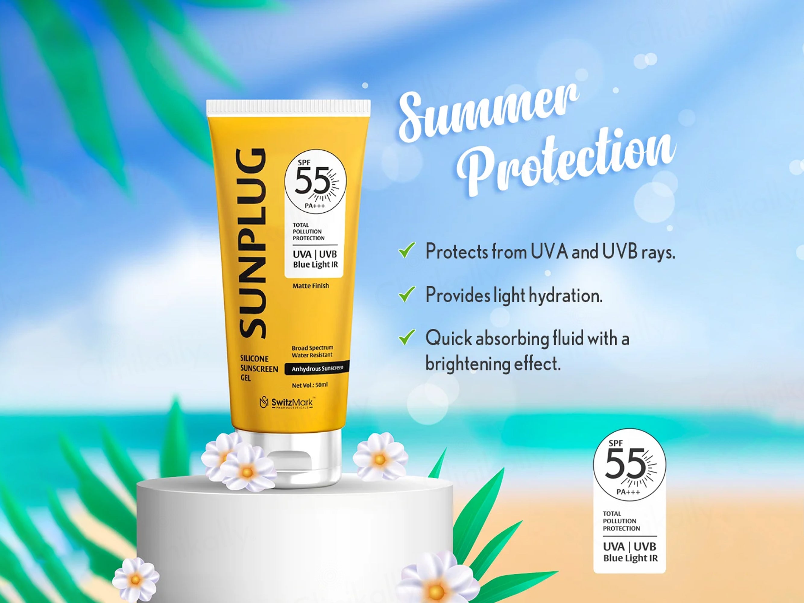 Sunplug Silicone Anhydrous Matte Finish Sunscreen Gel SPF 55 PA+++