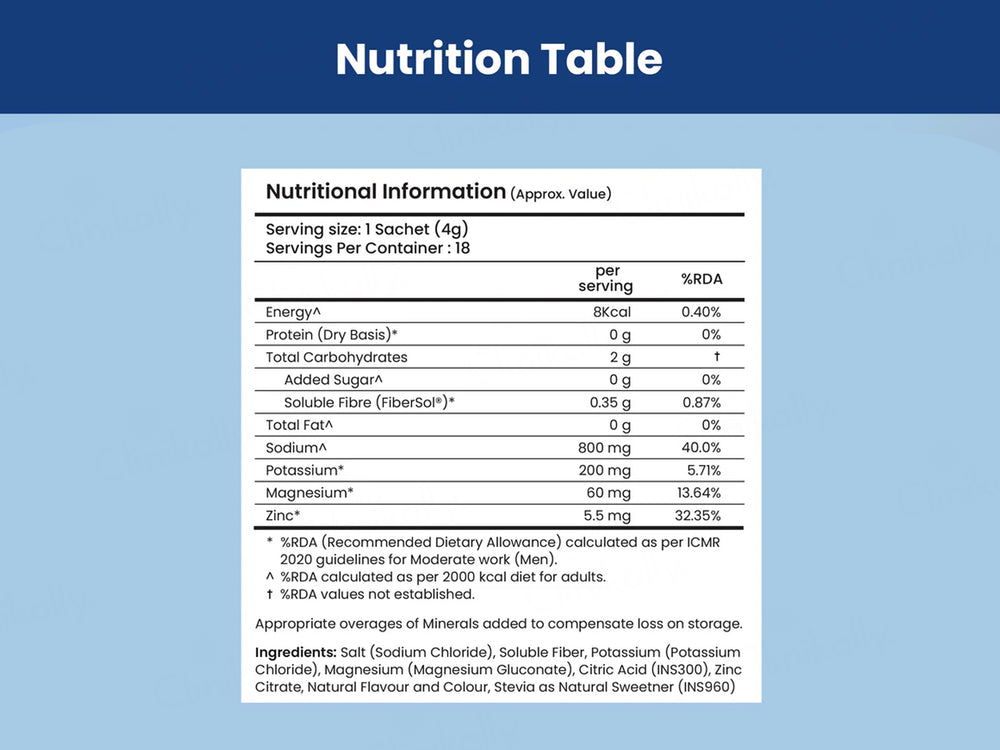 - Replenishes essential electrolytes lost through sweat and activity.