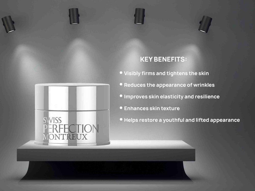 The Swiss Perfection Montreux Cellular Perfect Lift Skin Cream works by deeply hydrating the skin, promoting collagen production, and improving skin elasticity. It contains potent antioxidants to protect the skin from environmental damage and supports the skin's natural rejuvenation process.