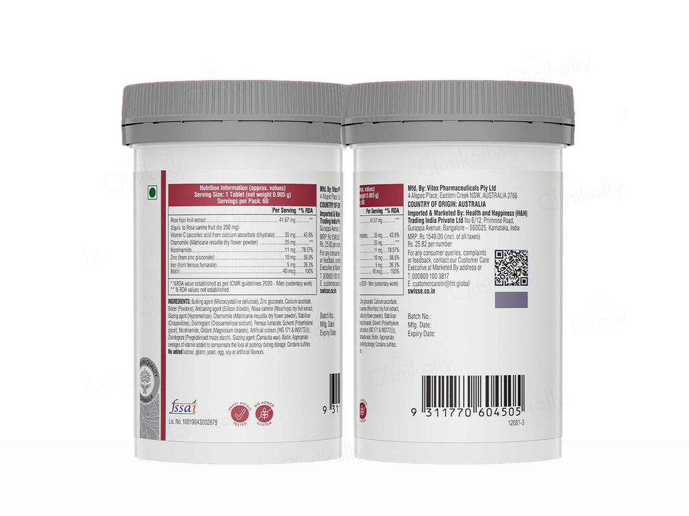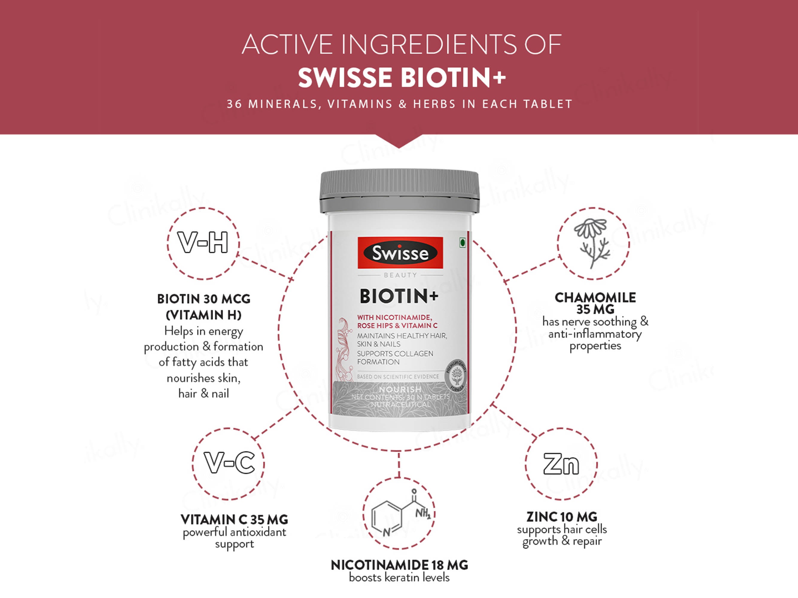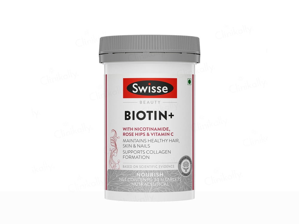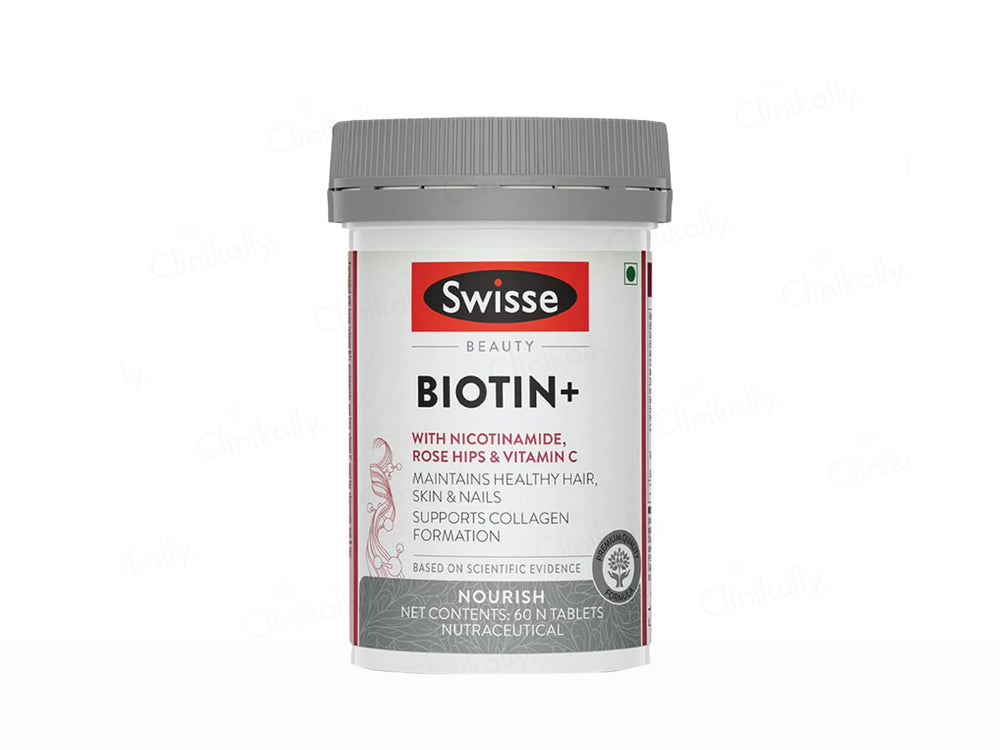 Swisse Beauty Biotin+ Tablet is a premium hair, skin and nails supplement designed to support overall beauty from within. Formulated with biotin, vitamin C, nicotinamide, zinc and rose hips, it helps reduce hair fall, promote stronger nails and maintain healthy, glowing skin. This antioxidant-rich formula supports collagen formation, improves skin elasticity and helps delay visible signs of ageing. Ideal for daily beauty nutrition, Swisse Beauty Biotin+ Tablet nourishes hair follicles, strengthens brittle nails and enhances natural radiance, making it a popular choice for holistic beauty and wellness support.
