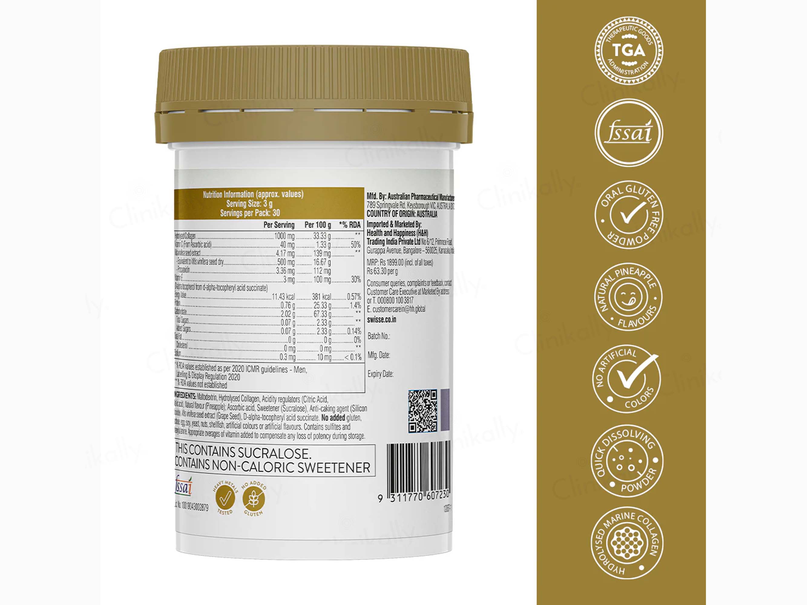 - Enriched with hydrolyzed collagen peptides and vitamin C.
