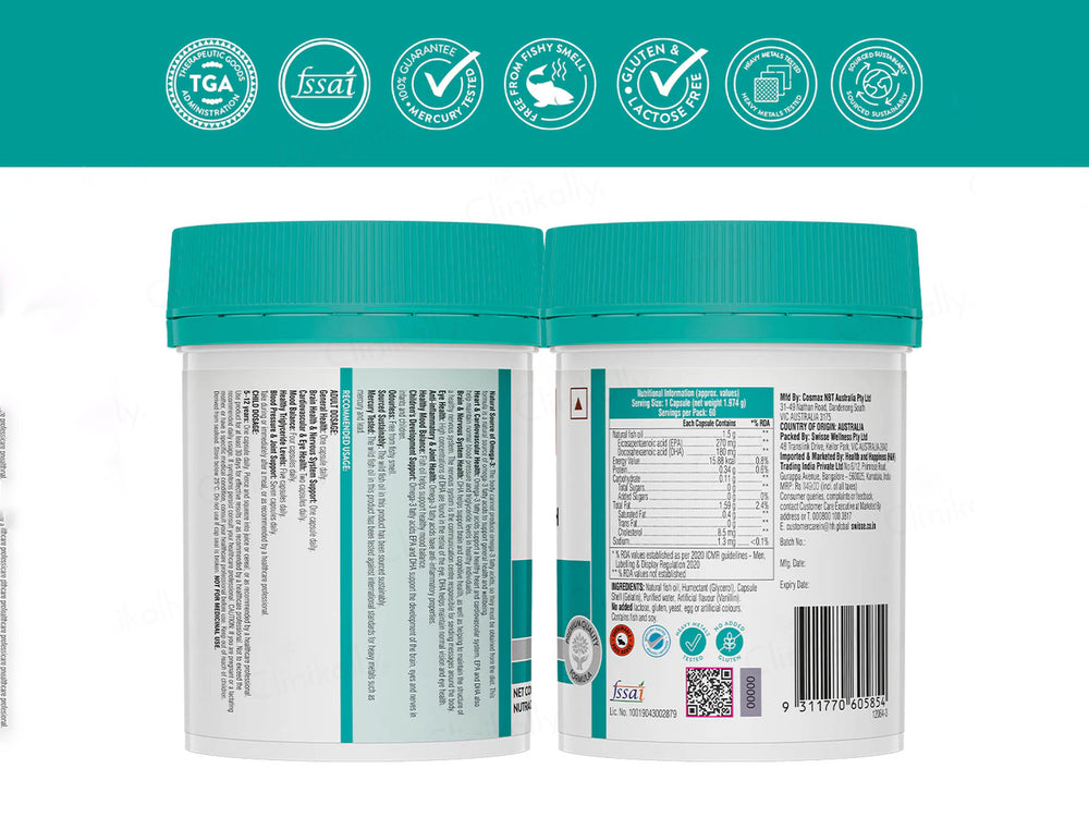 - Odourless capsules for easy consumption without fishy aftertaste.