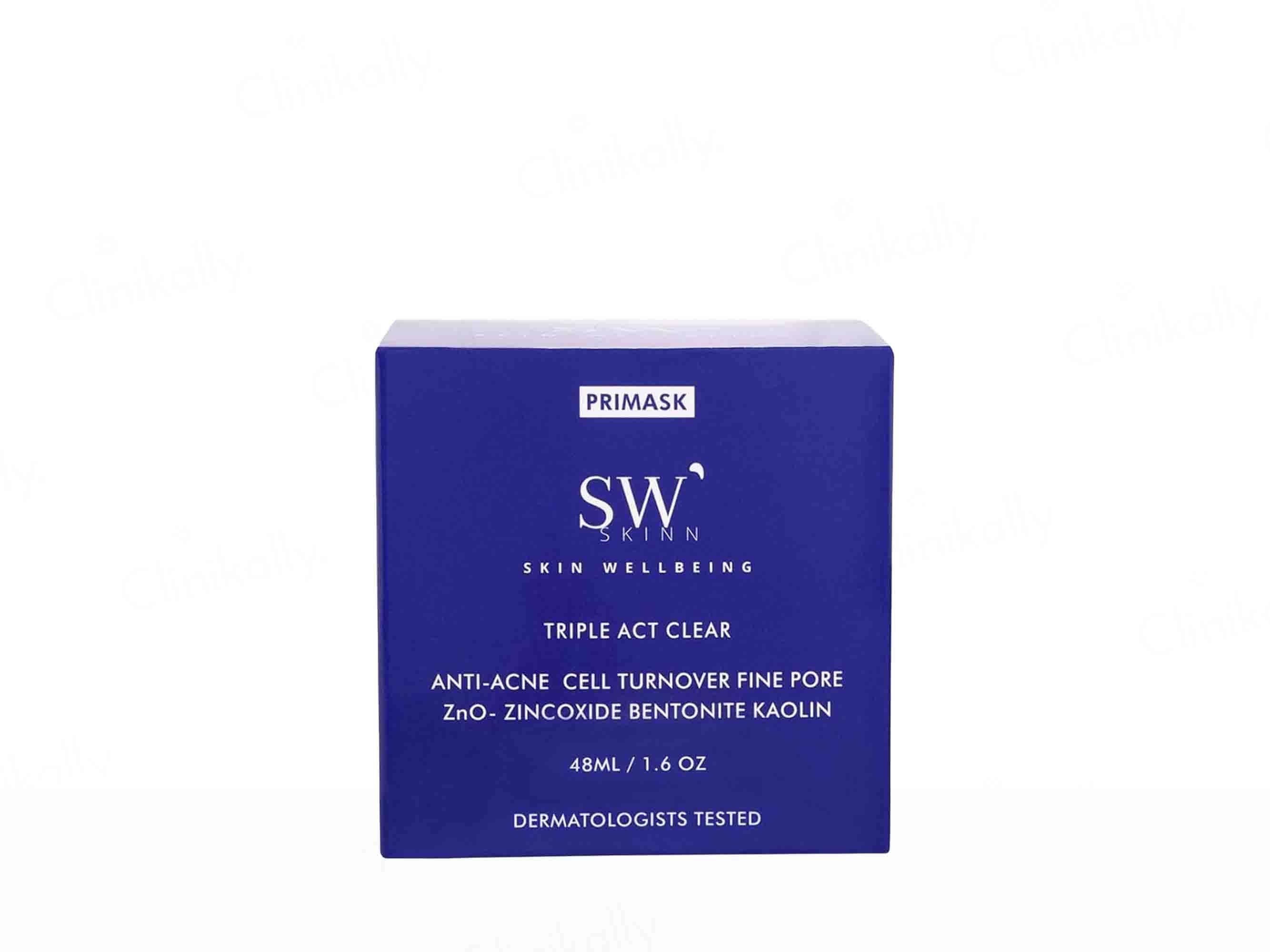 - Apply an even layer of SWSKINN Primask Triple Act Clear Face Mask on cleansed skin, avoiding the eye and lip area, leave for 10-15 minutes until dry, then rinse thoroughly with water; use 2-3 times weekly or as directed by a dermatologist.