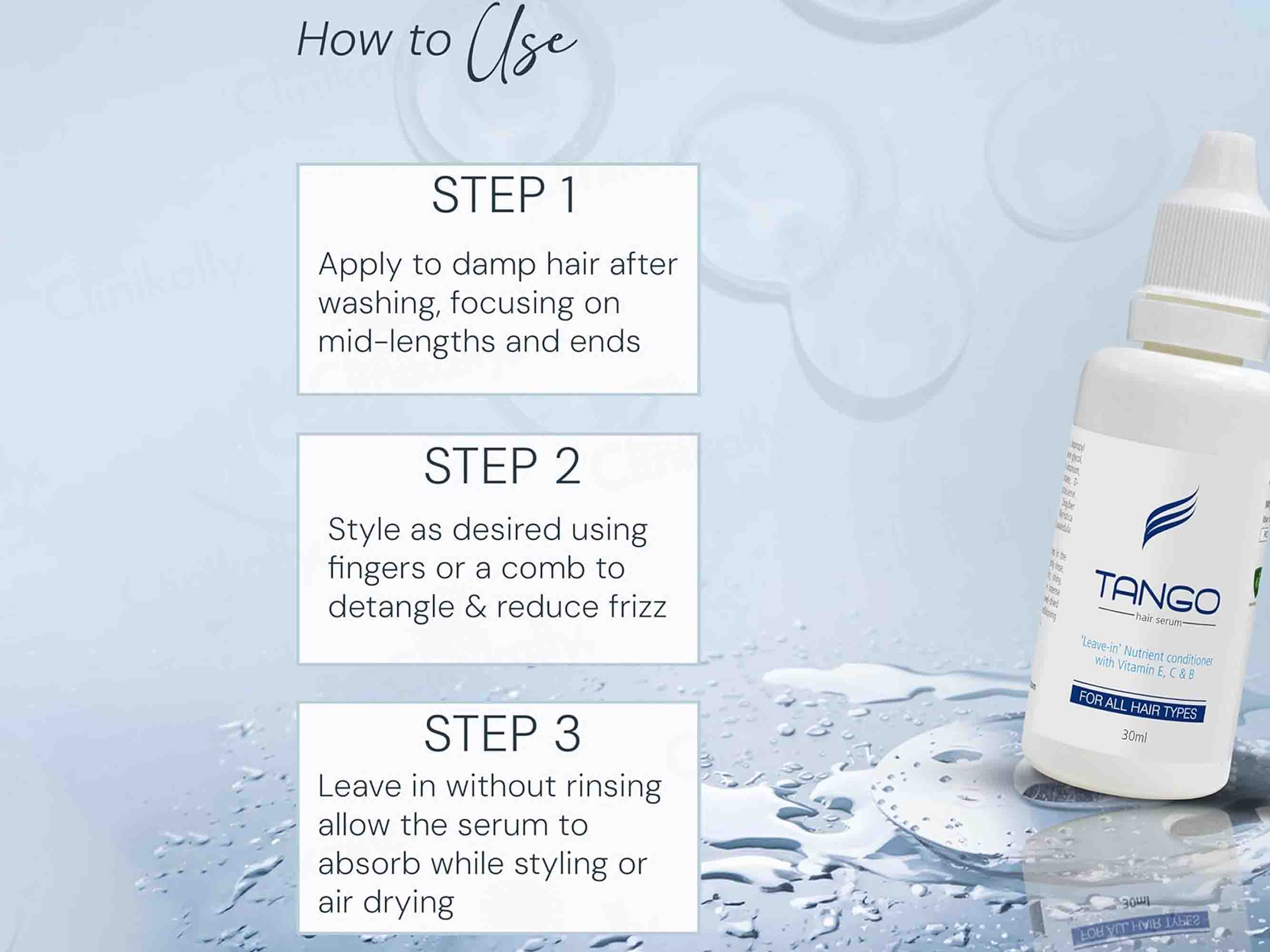 Tango Hair Serum is a nutrient-rich leave-in conditioning serum that revitalizes hair from roots to ends. Infused with a blend of active ingredients like dimethicone and Citrus sinensis, it enhances shine, promotes healthier hair, and prevents dryness from styling and environmental factors. Enriched with vitamins E, C, and B, this serum smoothens and nourishes all hair types for a lustrous, resilient finish.