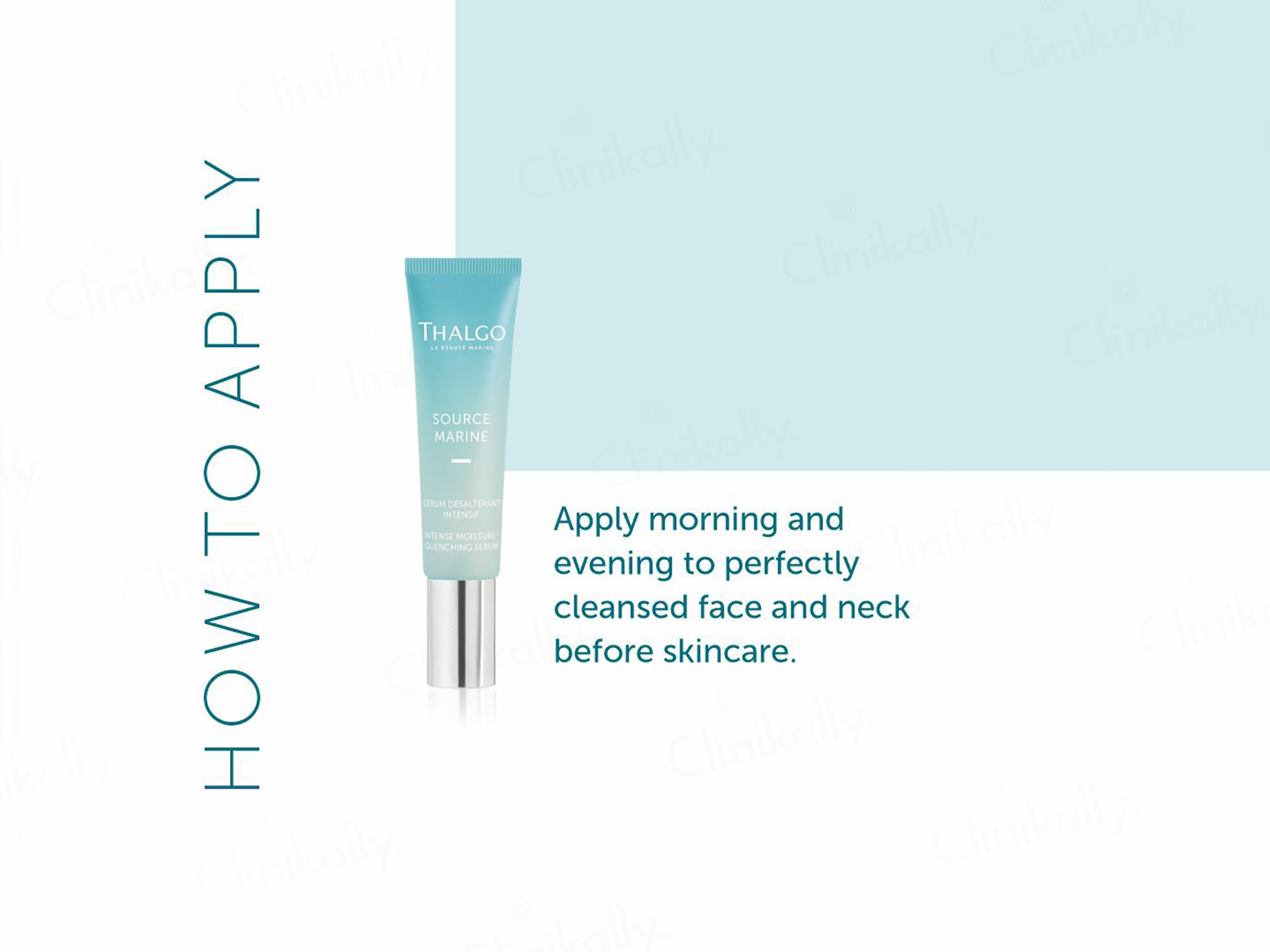 - Apply Thalgo Source Marine Intense Moisture Quenching Serum to clean face and neck.