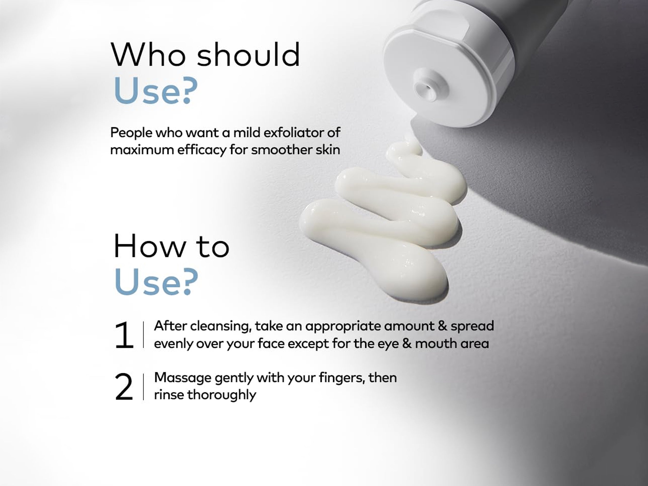 - Non-drying hydrating exfoliation.