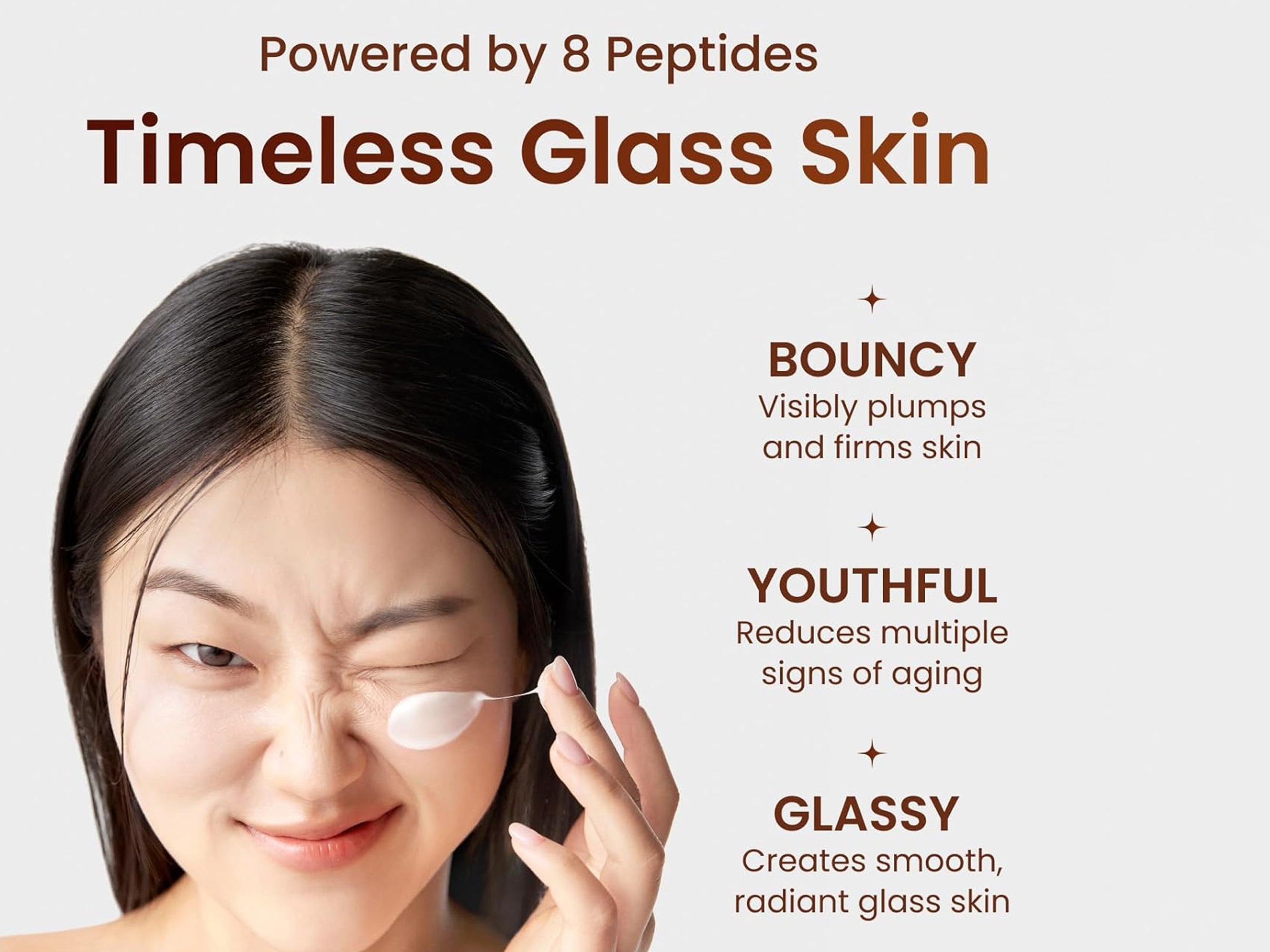 The Face Shop Alltimate Vegan Mucin Peptide 8 Firming & Anti-Aging Cream is a plant-powered, vegan formulation designed to firm, hydrate, and rejuvenate the skin across eight facial areas. It features a potent blend of Wild Yam Root that deeply hydrates and plumps the skin, an 8-Peptide Complex that targets visible signs of aging for improved firmness and elasticity, and Glutathione that brightens and revitalizes the complexion. The cream is dermatologically tested, non-sticky, and suitable for sensitive skin, uplifting sagging areas while evening out tone and texture for a smoother, youthful appearance. Free from fragrance, parabens, paraffin, animal-driven ingredients, mineral oil, talc, tar colorant, and polyacrylamide, this clean and conscious formula offers an intensely hydrating and firming experience for daily use.
