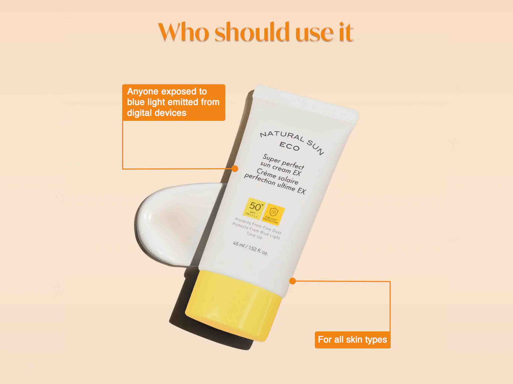 The Face Shop Natural Sun Eco Super Perfect Sun Cream EX offers advanced protection against harmful sun exposure with SPF 50+ PA+++, making it ideal for shielding your skin from both UVA and UVB rays. Its unique formulation goes beyond sun protection by also guarding against fine dust and blue light, which can cause skin damage and premature aging. This lightweight sunscreen has a tone-up effect, providing a radiant and even complexion, while its soothing ingredients ensure comfort throughout the day. Perfect for all skin types, this sunscreen is a must-have in your daily skincare routine for a flawless, protected, and youthful appearance.