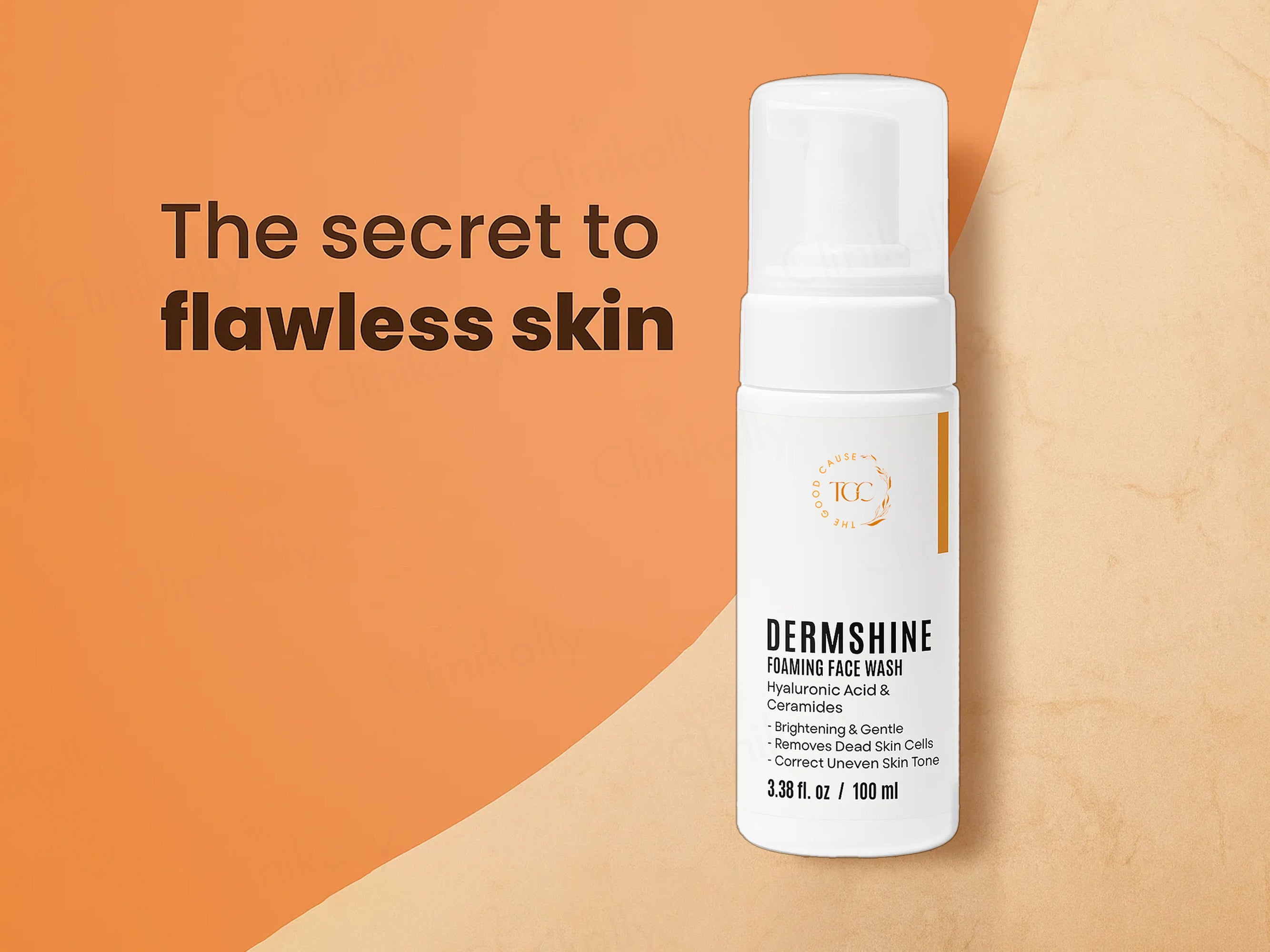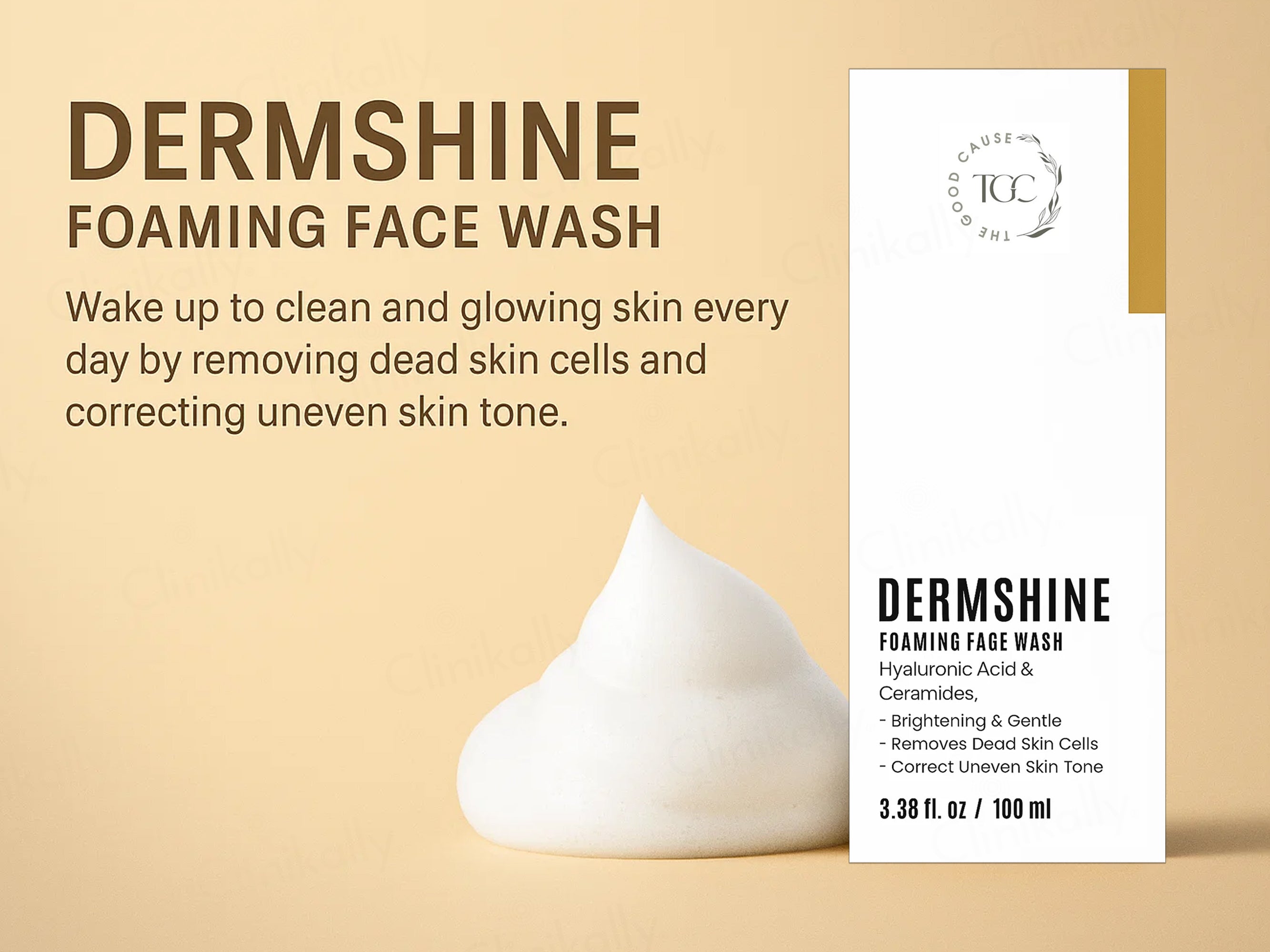Dermshine Foaming Face Wash is a skincare product designed to brighten, hydrate, and correct uneven skin tone with ingredients like Hyaluronic Acid and Ceramides.