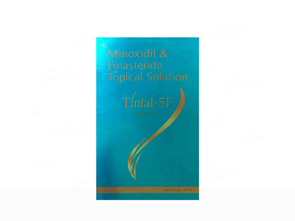 Tinfal-5F Topical Solution is a trusted remedy for hair loss and baldness. Featuring Minoxidil and Finasteride, it effectively promotes hair regrowth, especially in men suffering from male pattern baldness. This easy-to-apply solution revitalizes hair follicles, increasing hair density and thickness. Tinfal-5F Topical Solution is a reliable choice for regaining a fuller, more youthful head of hair and boosting self-confidence.