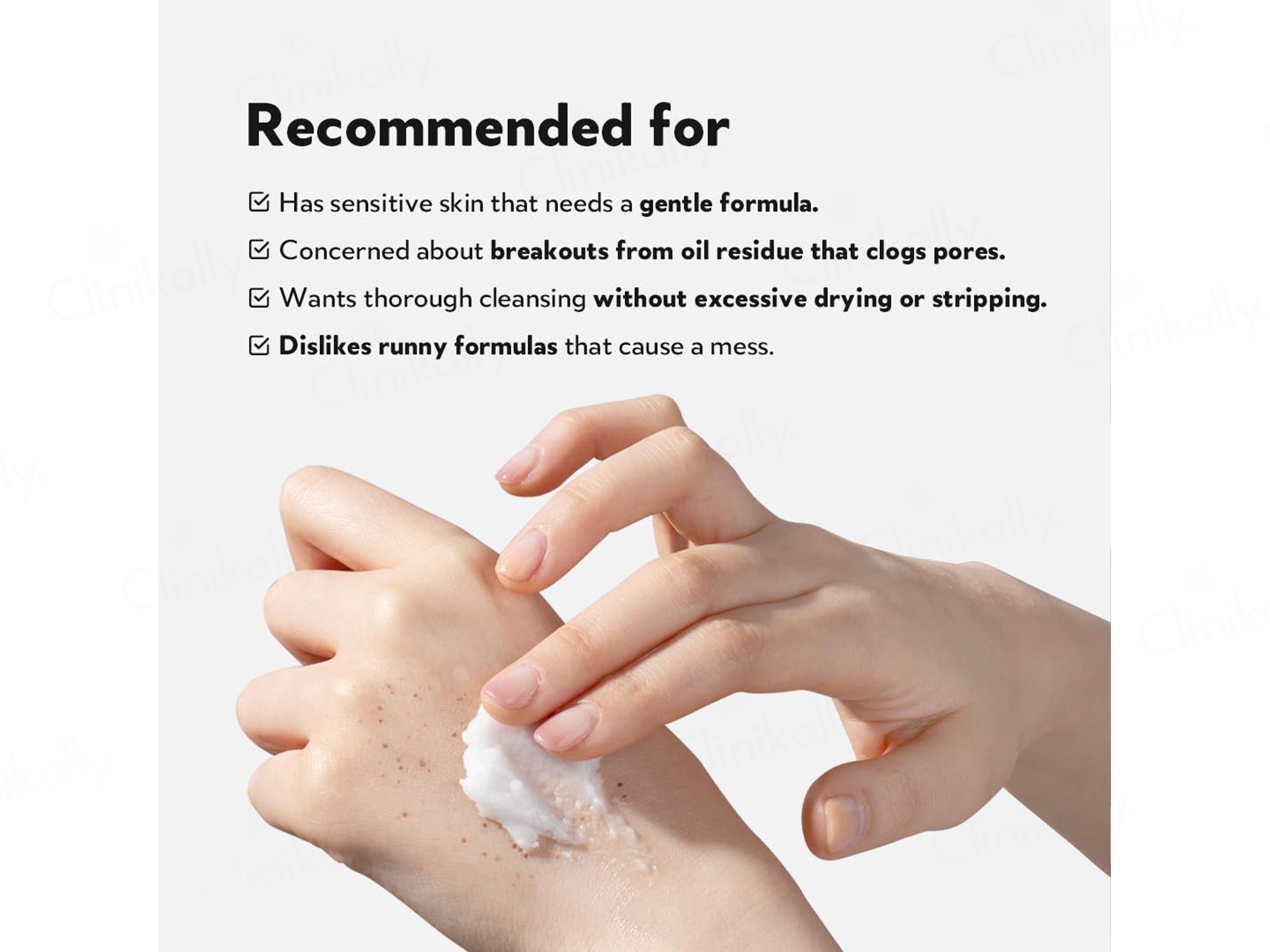 Apply to dry skin, massage gently, add water to emulsify, and rinse thoroughly. Use it as the first step in your double cleansing routine.