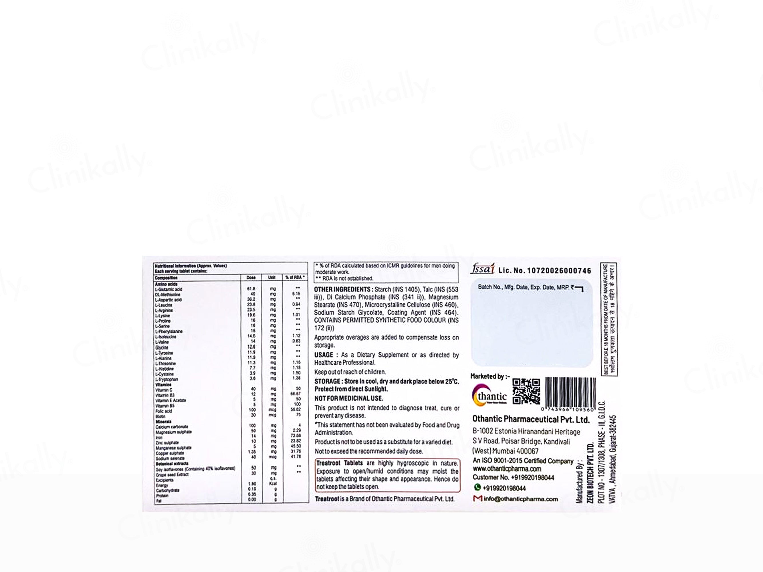 Treatroot Hair Tablet is a comprehensive dietary supplement formulated to support hair health and promote growth from within. Packed with essential vitamins, minerals, and botanical extracts, this tablet nourishes hair follicles, strengthens existing hair, and helps reduce hair fall. Its unique blend of ingredients, including biotin, works synergistically to address common hair concerns, making it an ideal choice for anyone looking to enhance their hair’s vitality and appearance. Incorporate Treatroot Hair Tablet into your daily routine for healthier, fuller hair.