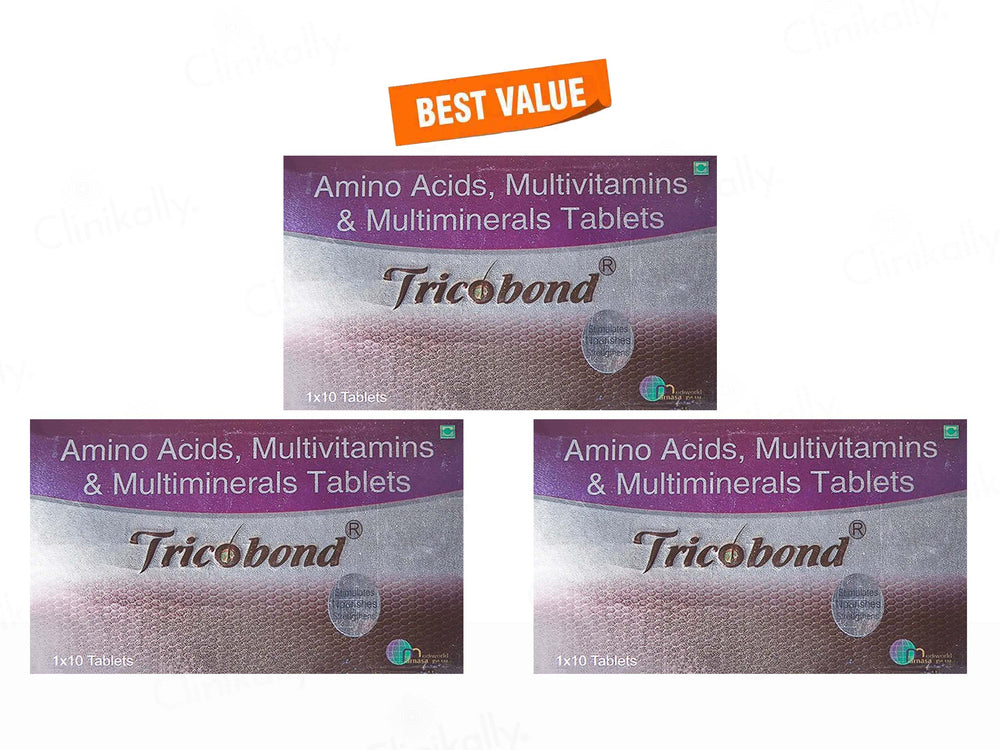 Tricobond Tablet is a dietary supplement designed to support hair health and combat hair loss. Formulated with a blend of essential vitamins and minerals such as Biotin, Vitamin B12, and Zinc, this tablet helps strengthen hair follicles, improve scalp health, and promote overall hair growth. Its unique combination of nutrients addresses deficiencies that may contribute to hair thinning and loss. Regular use of Tricobond Tablet can lead to healthier, more resilient hair and a more vibrant appearance.