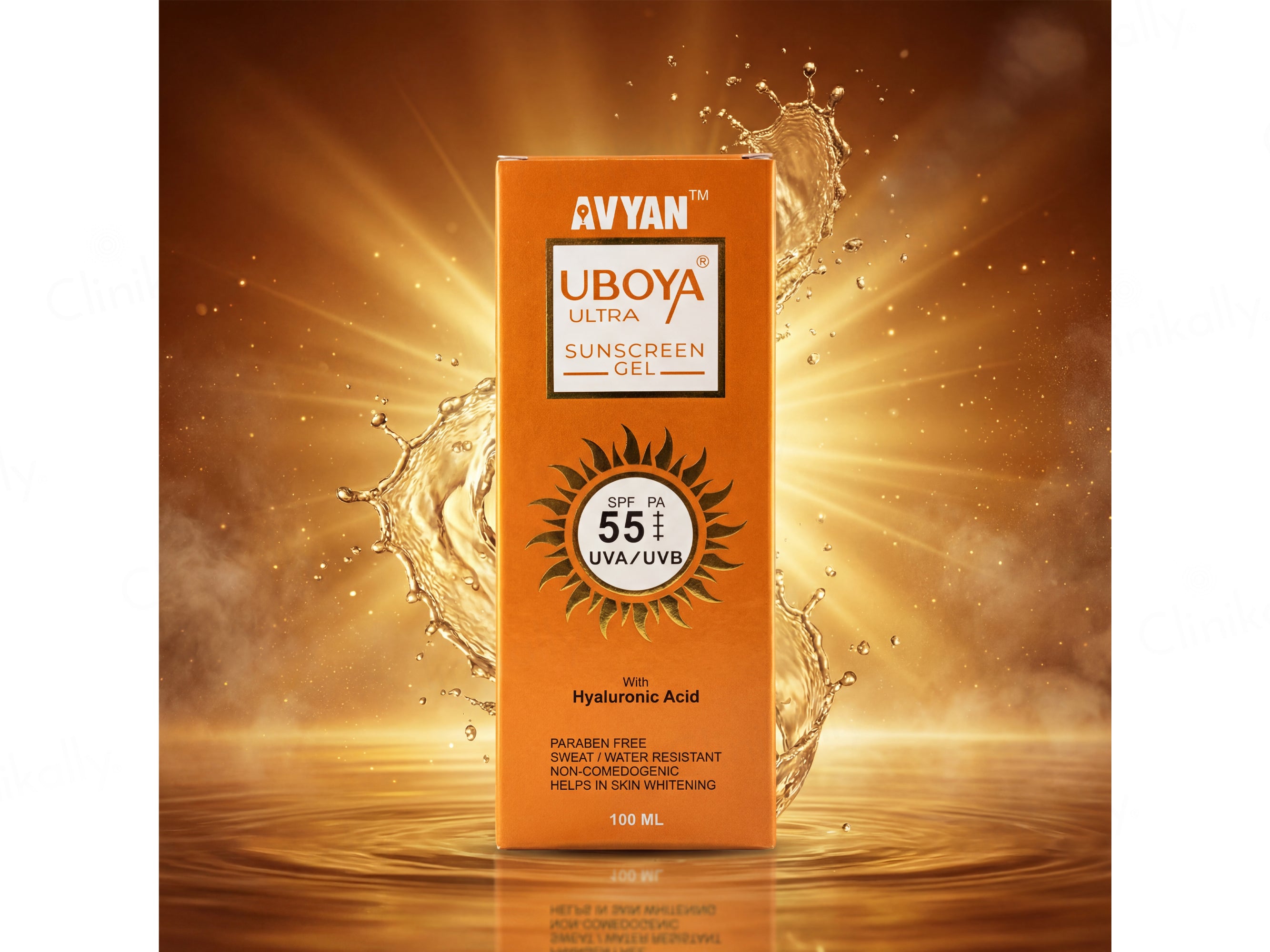- Massage Uboya Ultra Sunscreen Gel SPF 55 PA+++ gently and liberally onto clean face, neck, and exposed body areas at least 15 minutes before sun exposure for maximum protection; reapply every 2 hours, or more frequently after swimming, sweating, or toweling, and use daily for optimal UV defense and skin brightening.