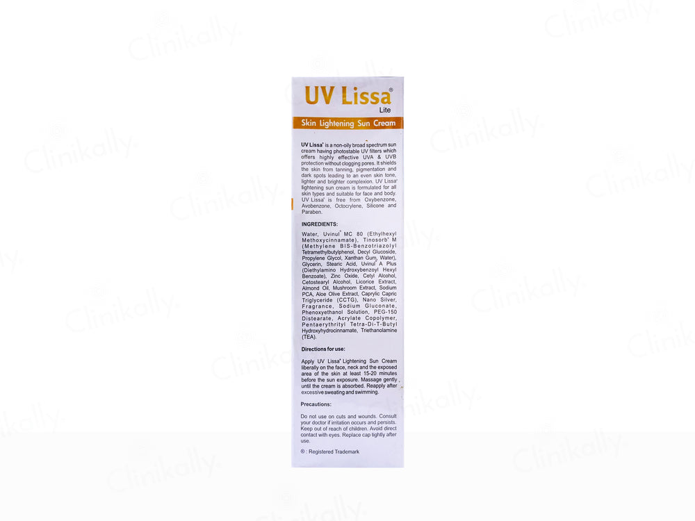 UV Lissa Lite Sun Cream is used for providing broad-spectrum UVA and UVB protection while lightening the skin and preventing pigmentation and dark spots.