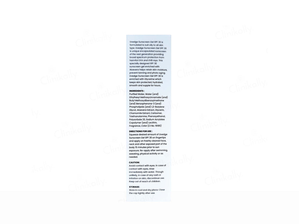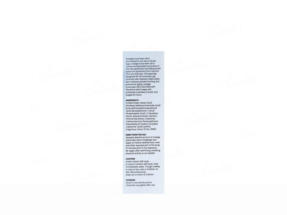 UVedge Sunscreen Gel SPF 30 is a cutting-edge encapsulated sunscreen designed for oily to all skin types. With broad-spectrum protection against harmful UVA and UVB rays, this sunscreen helps prevent sun damage, tanning, melasma and premature aging. Infused with Aloe Vera and Glycerin, this lightweight gel formula hydrates, soothes, and keeps skin supple without a greasy feel. Its advanced gel-based composition ensures smooth application and long-lasting protection. Dermatologically tested, UVedge Sunscreen Gel SPF 30 is perfect for daily sun defense.