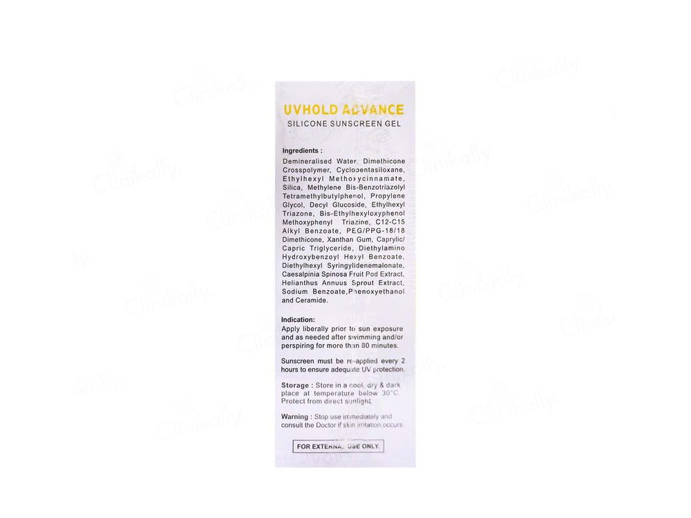 UVHold Advance Silicone Sunscreen Gel SPF 50 PA++++ is a broad-spectrum sunscreen designed to protect the skin from harmful UVA and UVB rays while providing a lightweight, non-greasy feel.