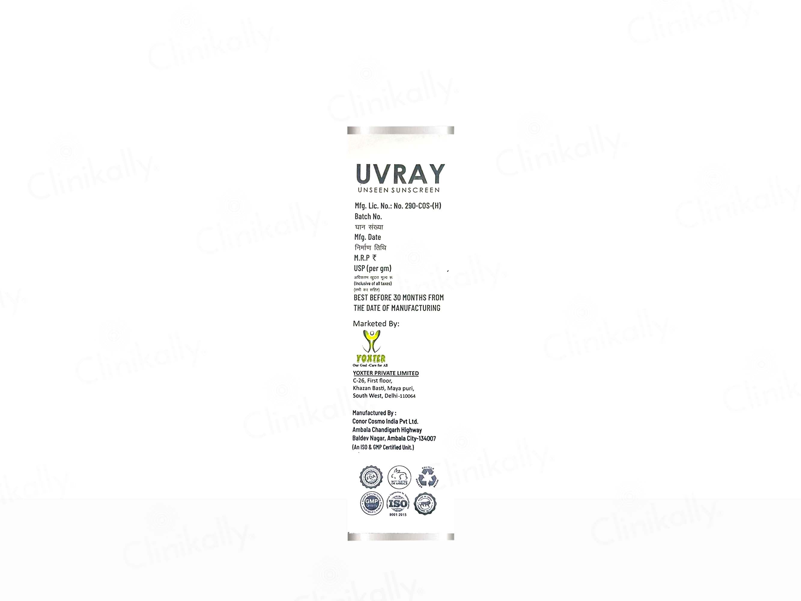 Uvray Unseen Sunscreen Gel SPF 50+ PA++++ is a high-protection, broad-spectrum sunscreen in a gel formula that protects the skin from UVA and UVB rays.