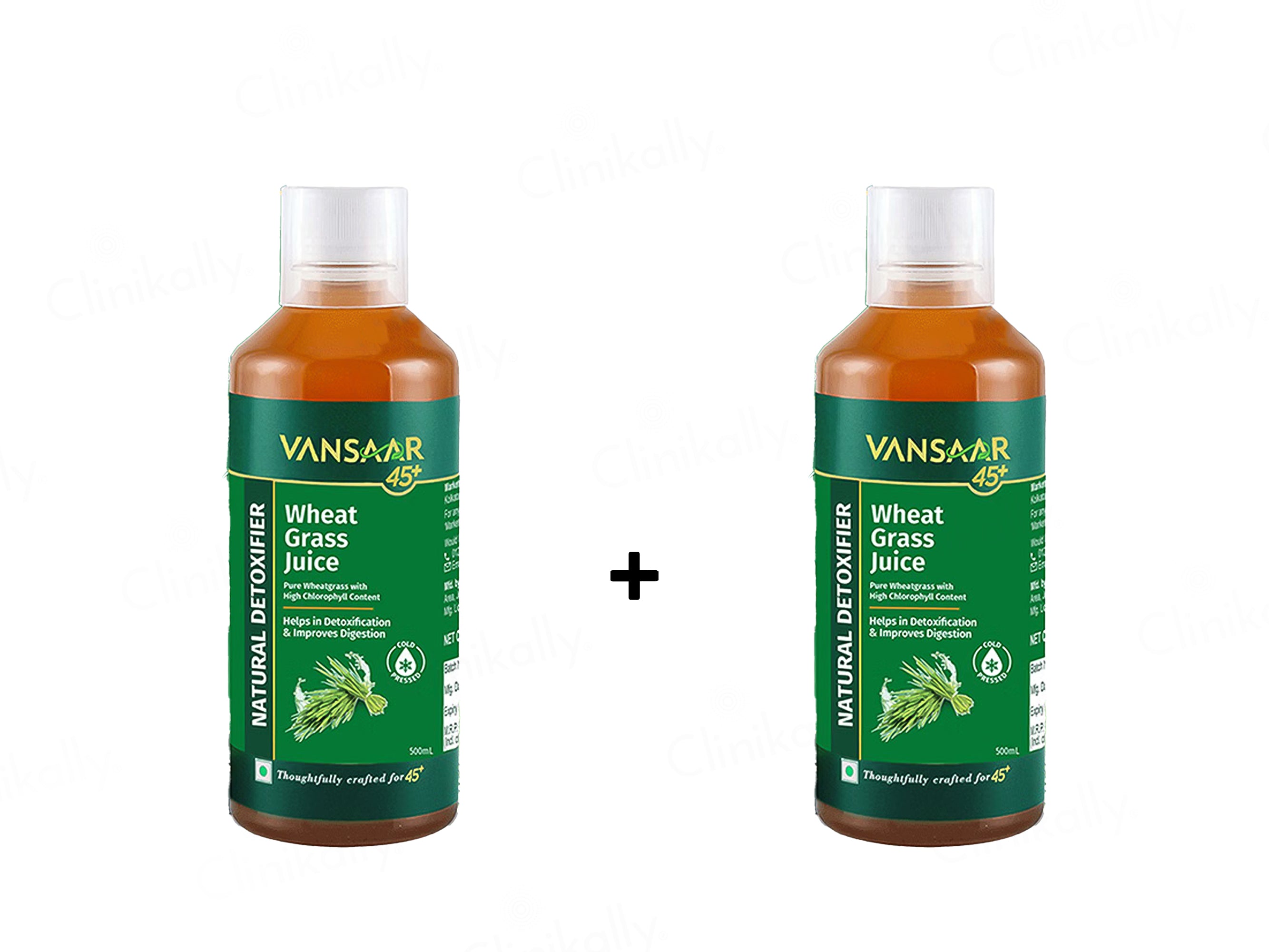 Vansaar 45+ Natural Detoxifier Pure Wheat Grass Supplement Juice is a 100% pure, Ayurvedic, high-chlorophyll formulation made from fresh wheatgrass harvested within 7–10 days to deliver maximum nutrition, working as a natural detoxifier that supports liver cleansing, boosts gut health, flushes out toxins, enhances digestion, and rejuvenates ageing cells while offering antioxidant protection and weight-management benefits, making it an ideal daily superfood for adults over 45 seeking improved metabolic wellness and overall vitality.