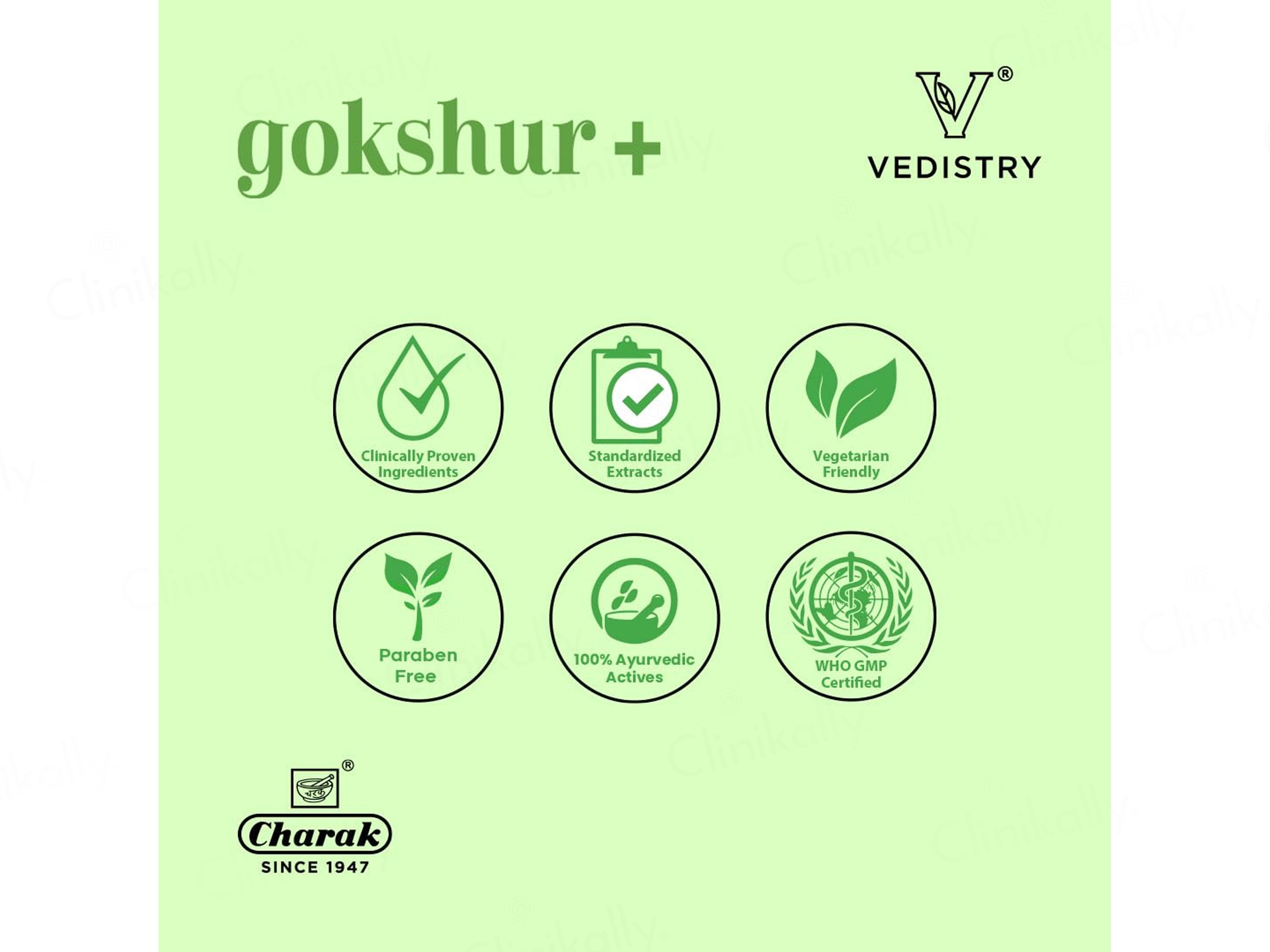 - Take 1 tablet of Vedistry Gokshur+ Ayurvedic Tablet twice daily after meals with lukewarm water.