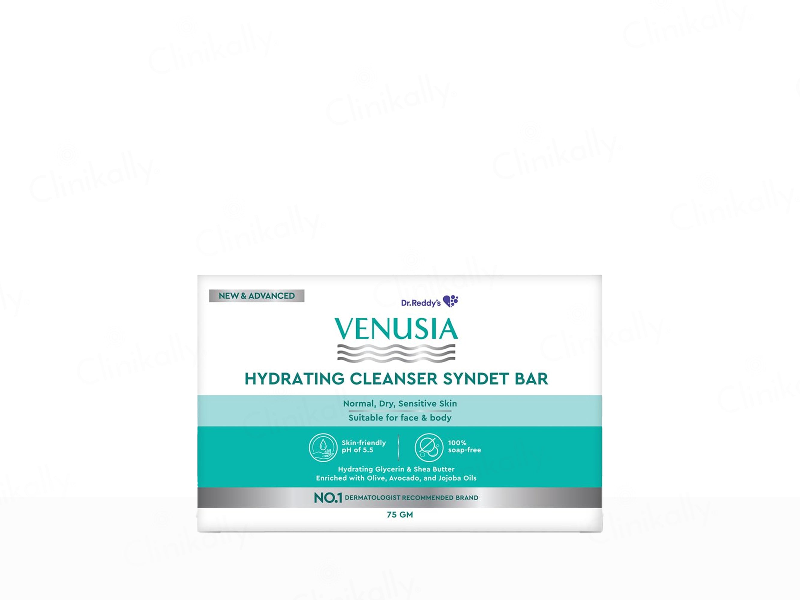 Venusia Hydrating Cleanser Syndet Bar is a dermatologist-recommended, soap-free cleansing bar formulated to gently clean and deeply hydrate the skin without disrupting its natural protective barrier. Enriched with Glycerin and Shea Butter, it locks in moisture and keeps the skin soft and supple, while Olive Oil, Avocado Oil, and Jojoba Oil provide essential nourishment and prevent dryness. The bar maintains a skin-friendly pH of 5.5, making it ideal for normal, dry, and sensitive skin. Its mild, non-irritating formulation cleanses effectively without stripping natural oils, leaving the skin feeling refreshed and comfortable. Free from parabens, alcohol, sulfates, and animal-derived ingredients, it can be used daily on both the face and body to maintain healthy, hydrated, and balanced skin.