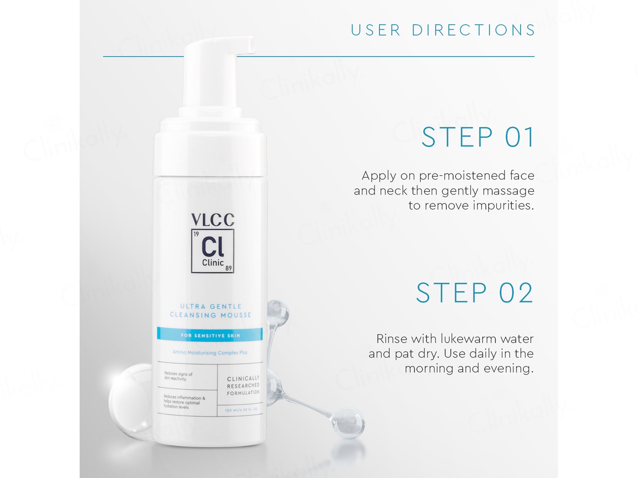 VLCC Clinic Ultra Gentle Cleansing Mousse for Sensitive Skin is a dermatologist-tested cleanser developed with Amino Moisturising Complex Plus to gently remove impurities while maintaining the skin’s natural balance. Enriched with Allantoin, Glycerin, Betaine, Aloe Vera Extract, and Chamomile Extract, it supports skin healing, hydration, and protection from environmental stress while calming redness and irritation. Fortified with seven botanical extracts, vitamins A, B, and C, essential minerals, and powerful antioxidants, it deeply cleanses without stripping moisture, leaving the skin soft, soothed, and refreshed. Its gentle formula is free from harsh chemicals, effectively removing dirt and impurities while preserving the skin’s natural protective barrier for enhanced comfort and clarity.