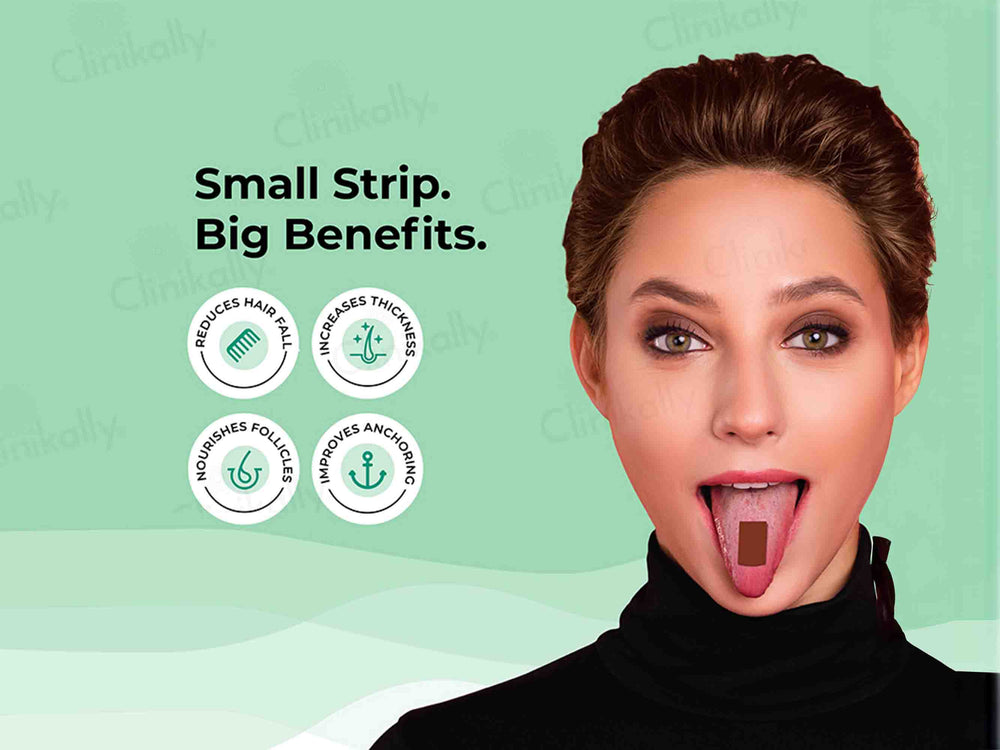 These oral strips contain a blend of ingredients that help combat hair fall and promote hair health when dissolved on the tongue.