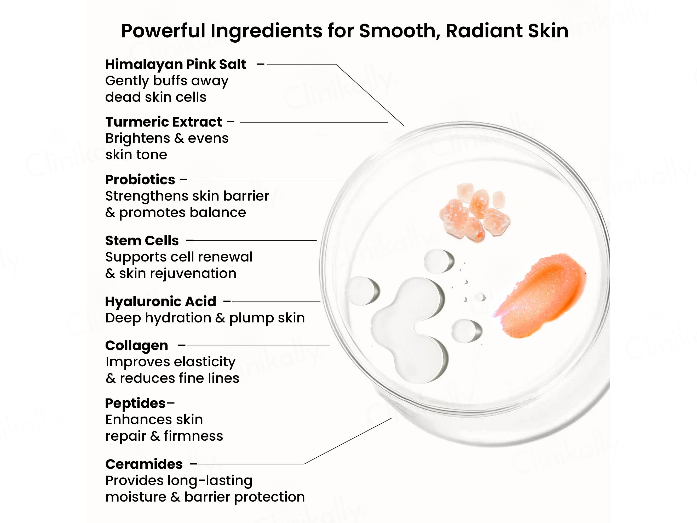 Key ingredients include Himalayan salt, collagen, peptides, ceramides, probiotics, and botanical oils.