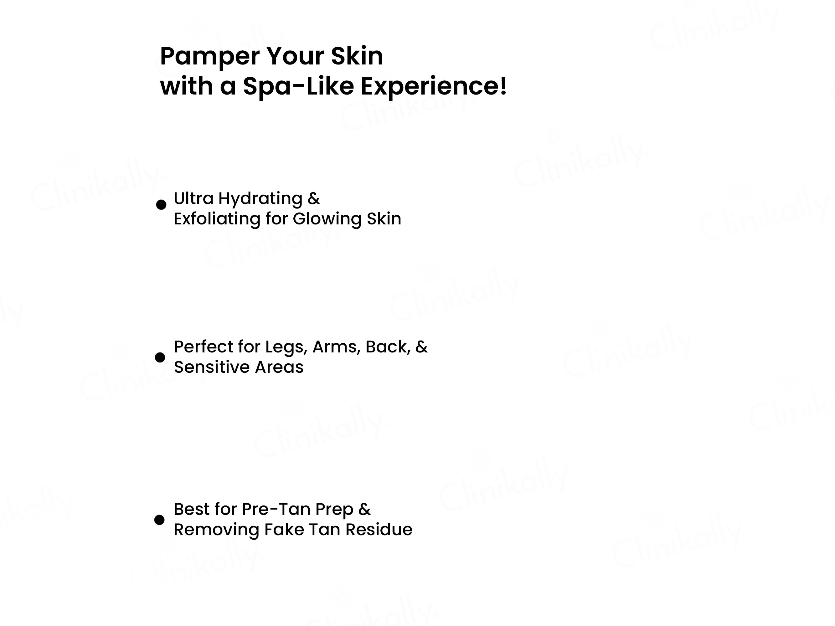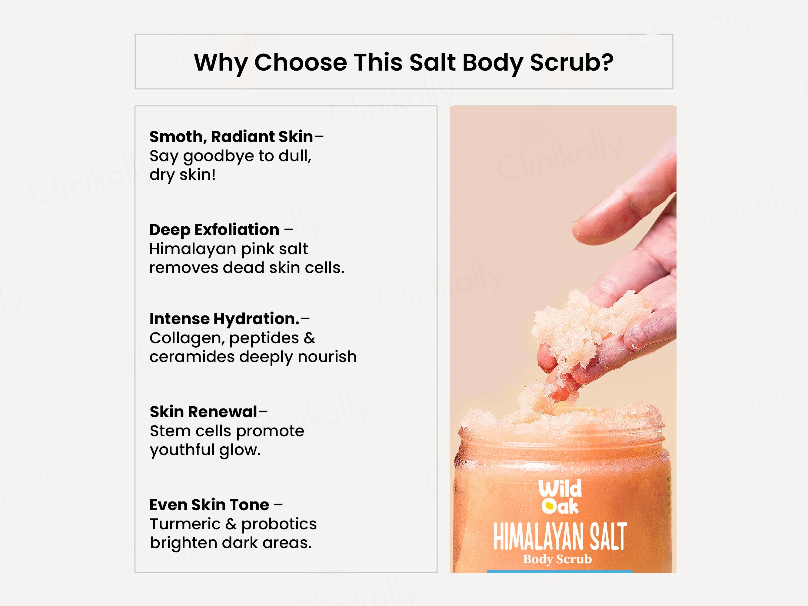 Wild Oak Himalayan Salt Body Scrub is used to exfoliate dead skin, lighten tan, and smoothen rough skin on body areas like neck, elbows, and legs.
