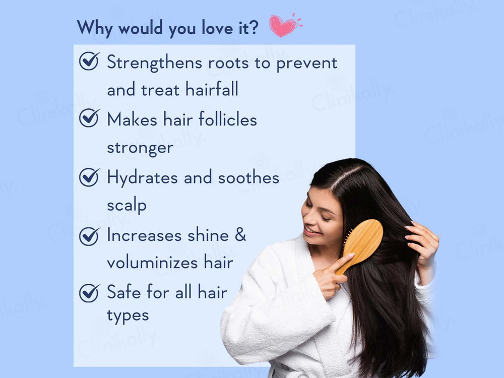 - Reduces hair fall and strengthens hair roots.