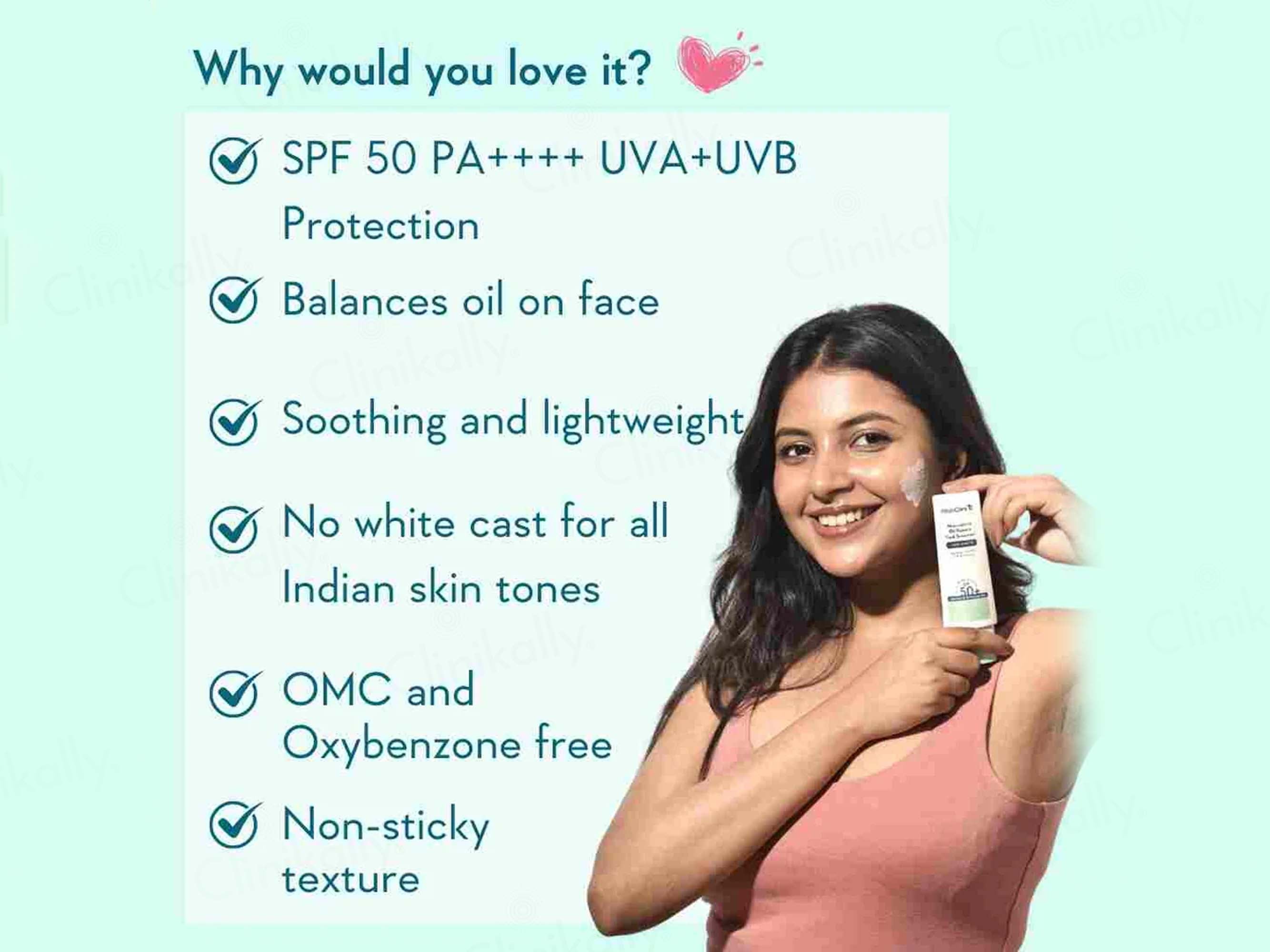 This sunscreen works by forming a protective barrier against UVA and UVB rays while niacinamide balances sebum production, providing a smooth and non-greasy finish.