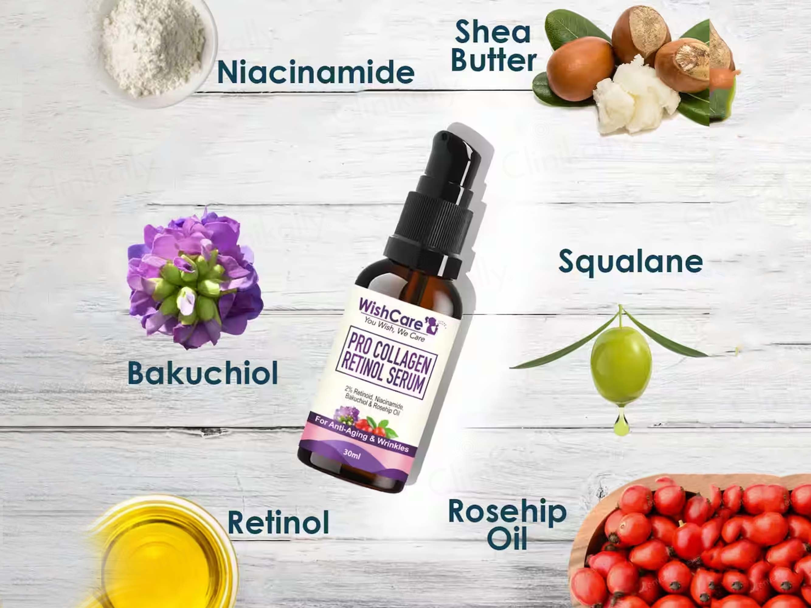 WishCare Pro Collagen Retinol Serum is a powerful anti-aging formula designed to boost collagen, smooth fine lines, and reduce wrinkles for firmer, youthful-looking skin. Powered by 2% Retinoid, Niacinamide, Bakuchiol, Rosehip Oil, and Squalane, it supports skin renewal while enhancing elasticity and improving texture. This advanced retinol serum promotes skin plumping, refines pores, and helps achieve clear, acne-free, radiant skin. Perfect for anyone seeking effective anti-wrinkle, collagen-boosting, and skin-tightening benefits for a smoother, visibly rejuvenated complexion.