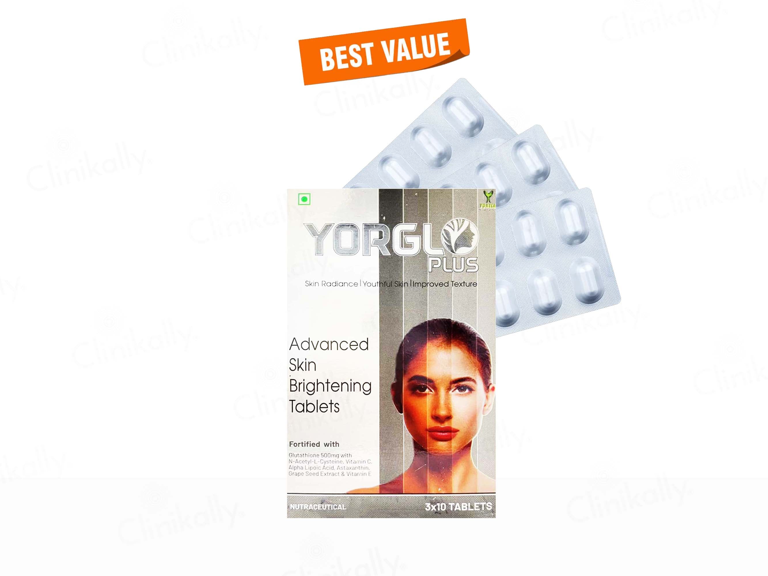 - Take one Yorglo Plus Advanced Skin Whitening Tablet daily with water.