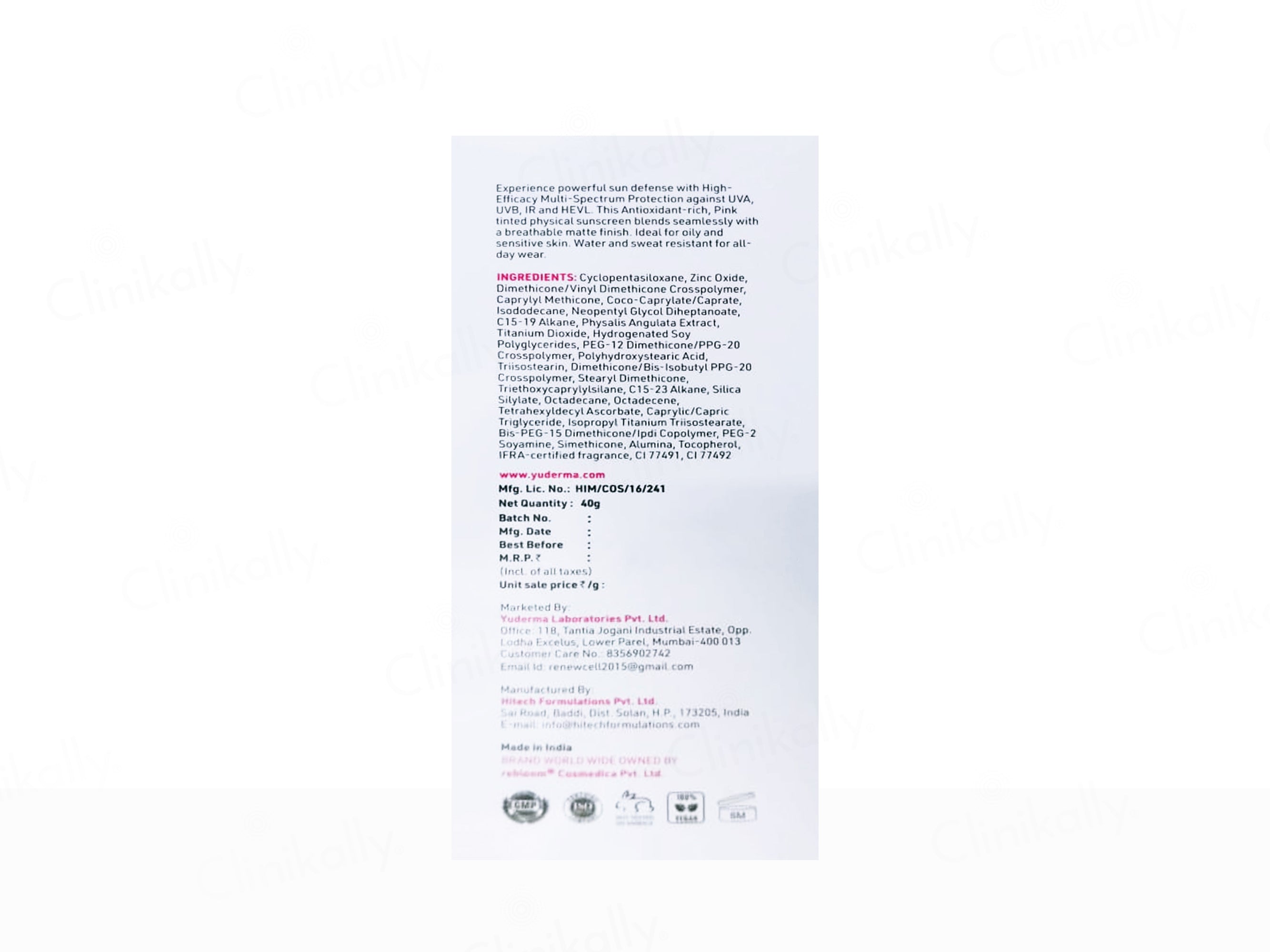 Yuderma Eclipse Solaire Matte Effect Cushiony Pink Tint Non-Aqueous Sunscreen SPF 55 PA++++ is a skincare product designed to offer powerful sun protection with high-efficacy broad-spectrum defense against UVA, UVB, IR, and HEVL rays, ideal for oily and sensitive skin. Enriched with 12% Zinc Oxide and 8% Titanium Dioxide, it provides 100% mineral UV filtering, a breathable matte finish, and a cushiony pink tint, while its surface-stabilized, antioxidant-rich formula ensures no white cast and resists water and sweat. Formulated for daily wear, it delivers effective protection and a smooth complexion with consistent use.