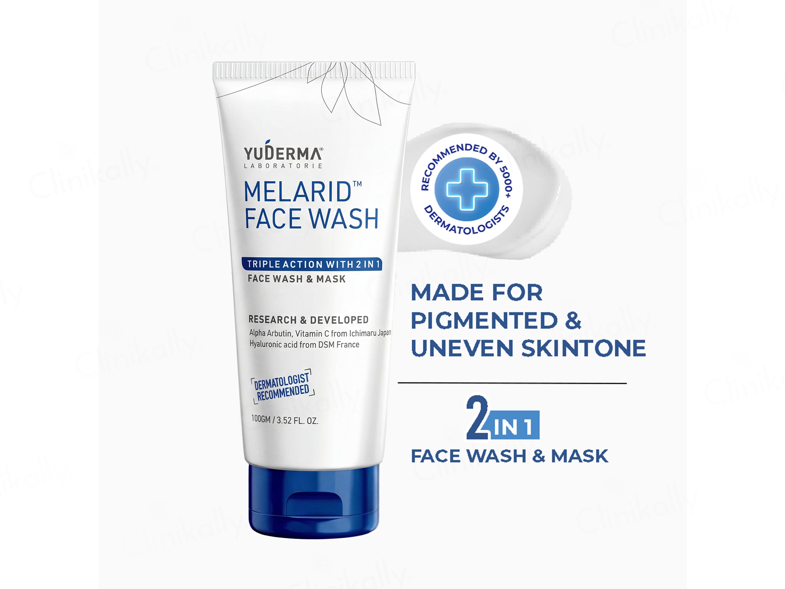 Yuderma Melarid Triple Action Face Wash is a dermatologist-recommended skincare solution that works as both a face wash and mask. Its advanced formula targets deep cleansing, brightening, and clarifying the skin, making it ideal for dull, uneven, and blemish-prone skin. With its triple-action benefits, Melarid helps remove impurities, controls excess oil, and improves skin tone for a radiant, refreshed look. Designed for daily use, this gentle yet effective face wash enhances clarity and smoothness, leaving skin clean, healthy, and glowing naturally.