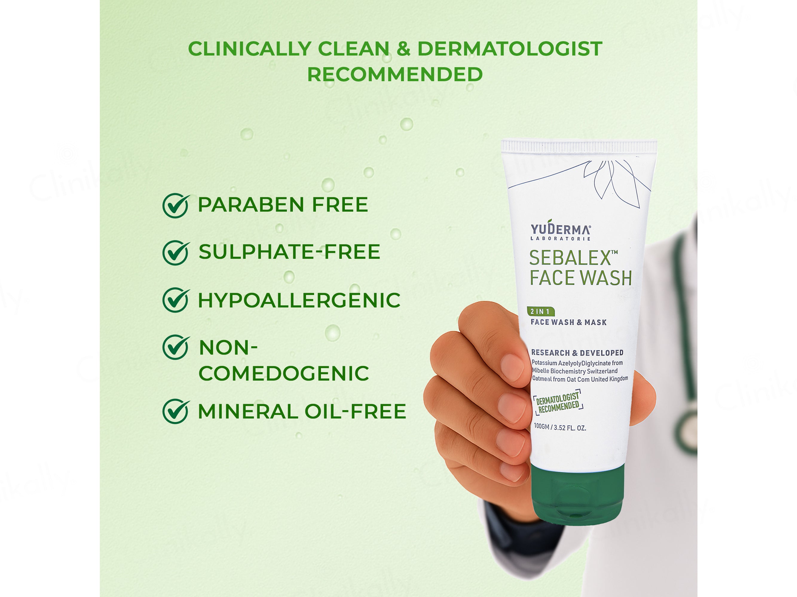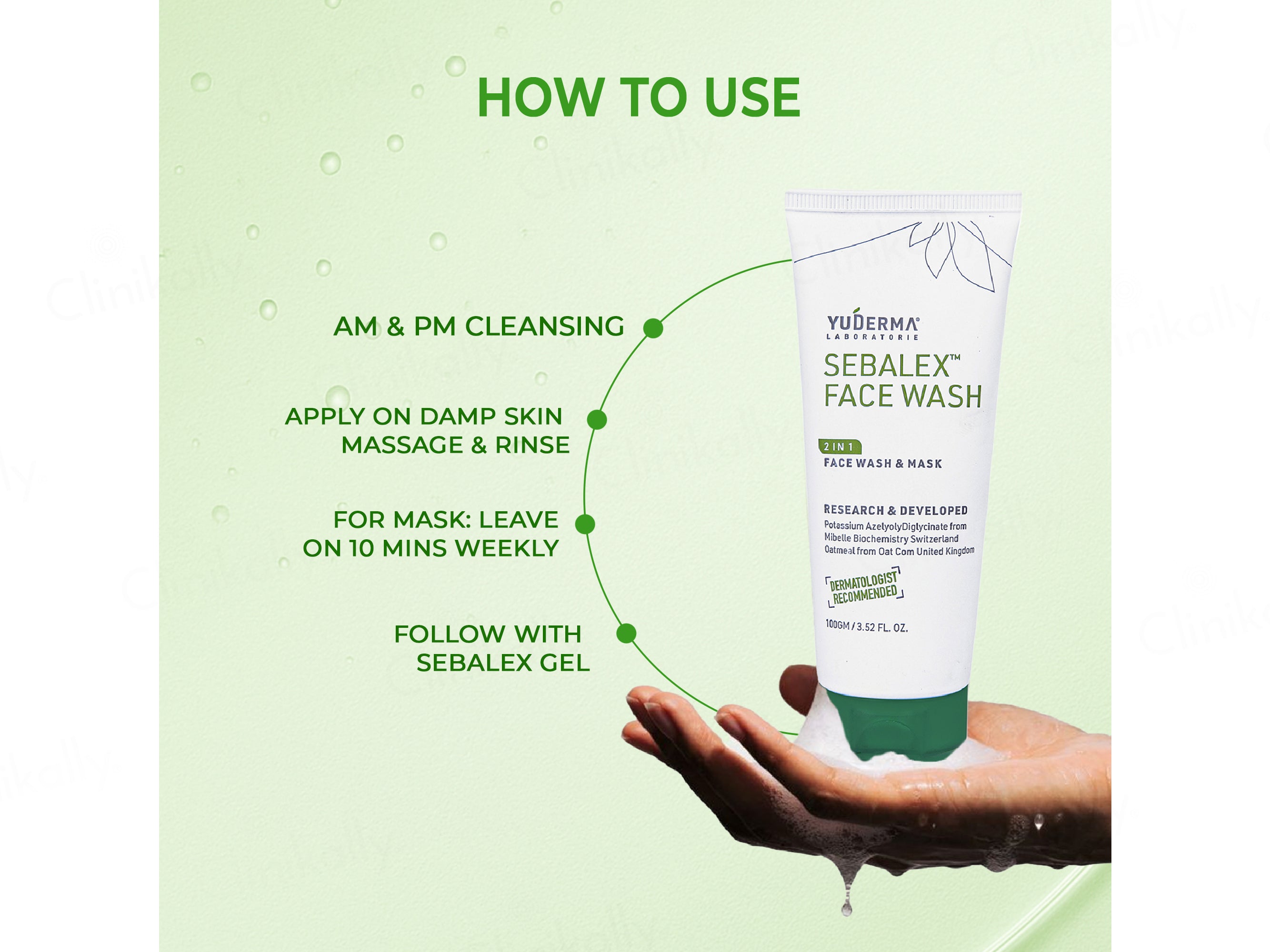 - As a Mask- Apply Yuderma Sebalex Face Wash and let it dry for 3 minutes. Rinse off with water.
