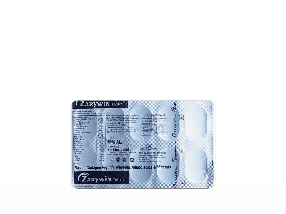 Zarywin Tablet is a daily dietary supplement designed to support skin health, boost immunity, and enhance general well-being.