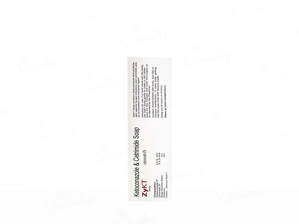 ZyKT Antifungal & Antibacterial Soap is a medicated cleansing bar formulated with Ketoconazole (2%) and Cetrimide (0.5%) to effectively combat fungal and bacterial skin infections. It helps treat itching, redness, and irritation while preventing recurrence of infections like ringworm and athlete’s foot. The gentle soap noodles base cleanses without stripping moisture, while perfume and Solvent Red 1 give it a pleasant feel. Ideal for daily use on affected areas, ZyKT Soap promotes clean, healthy, and infection-free skin, making it perfect for maintaining personal hygiene.